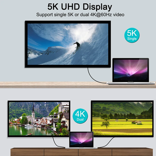 Enjoying ultra HD video resolution, 40Gbps bandwidth allows dual 4K@60Hz video or single 5K@60Hz outputs 40Gbps speed cables are suitable for eGPU and dual 4K display scenarios.