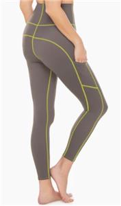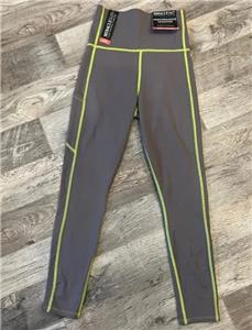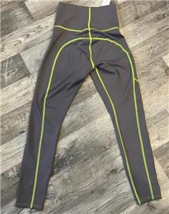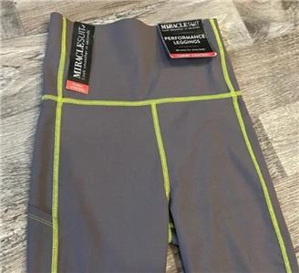 These tummy control performance leggings are size small and made by Miraclesuit. They are made with 66% nylon and 34% spandex and machine washable. The waist measures 11" across unstretched and the inseam is 25". They are new with tags, (retail value of $86), might have some wrinkling with shipping. Nice leggings.