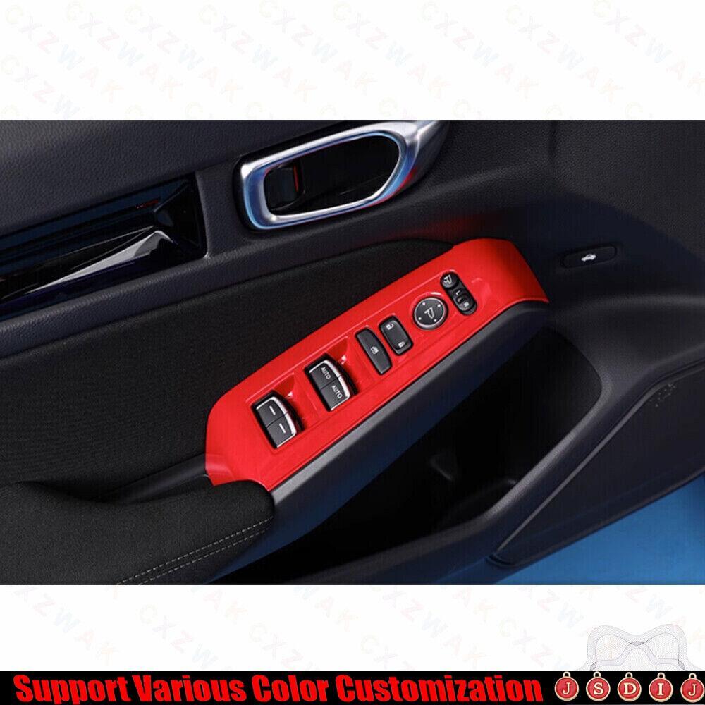 For Honda Civic 11th 2022-2023 Bright Red Window Lift Panel Switch Cover Trim 4*