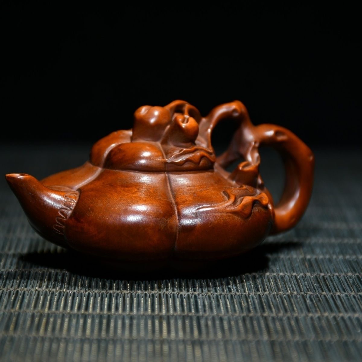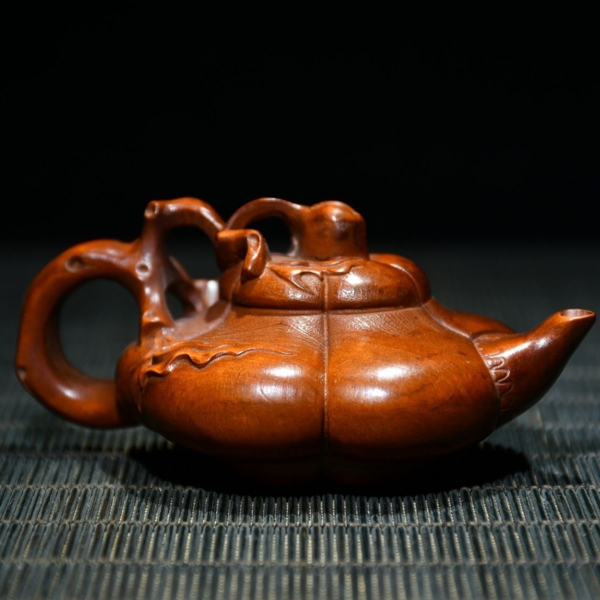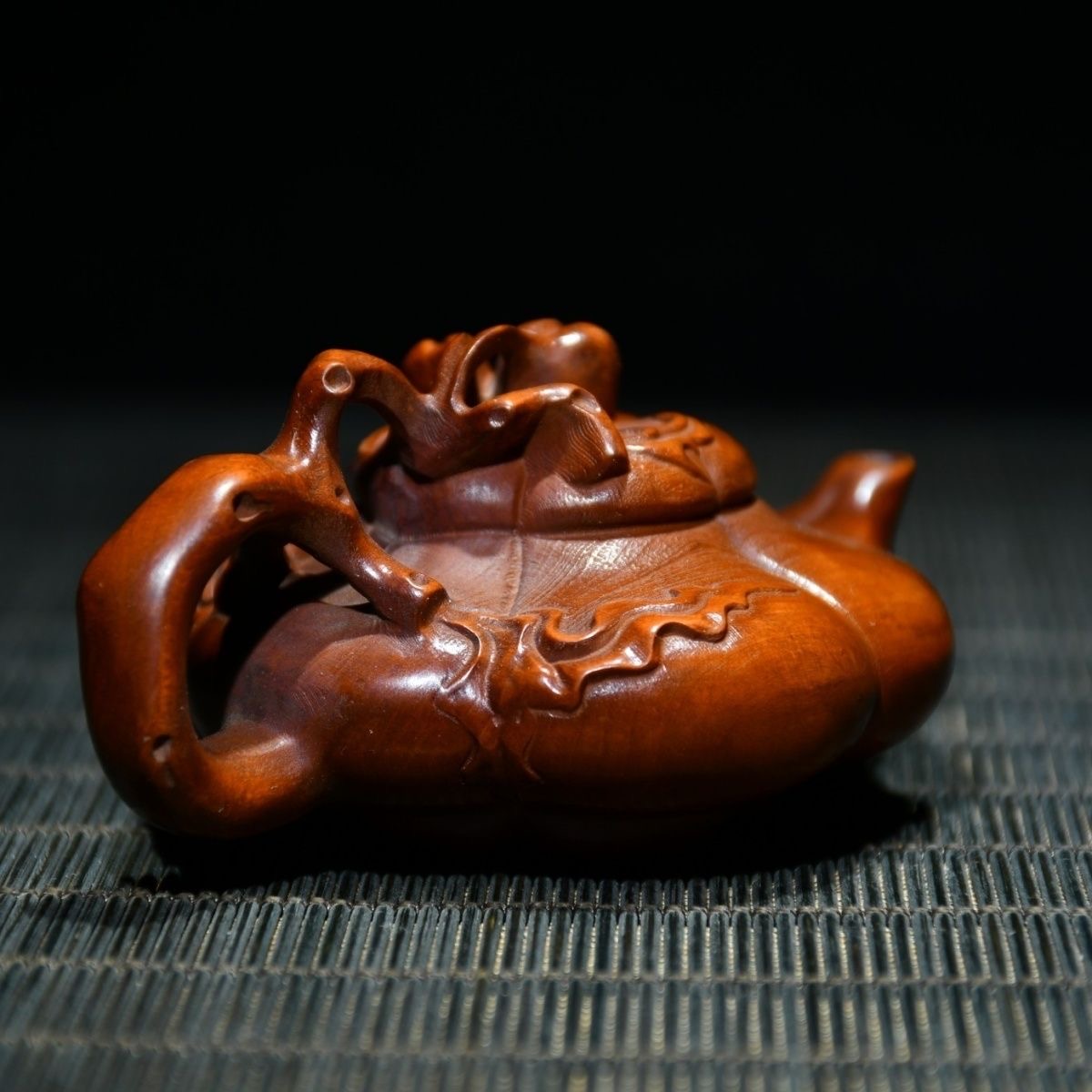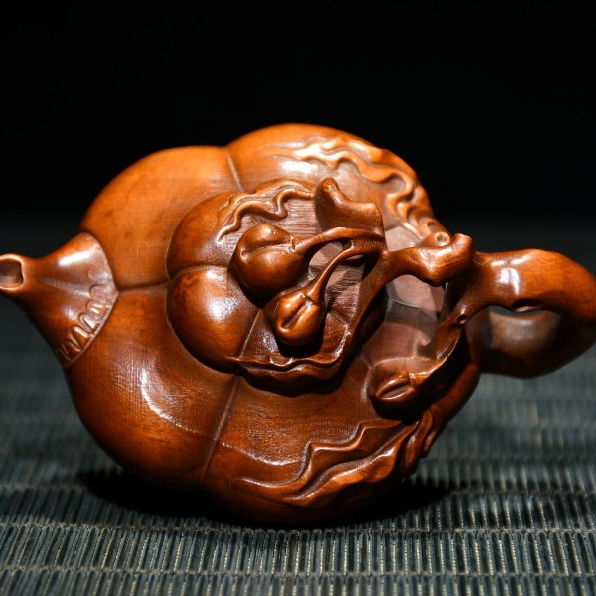 Chinese Antique Boxwood Carving Teapot Statue Home Decorative Collection Curio