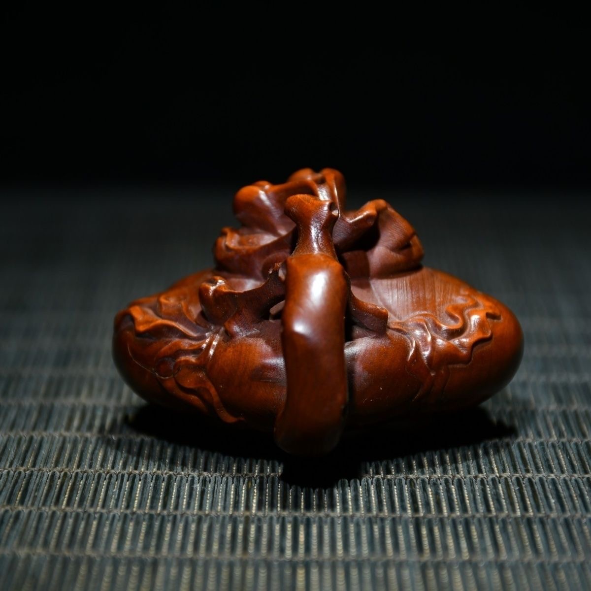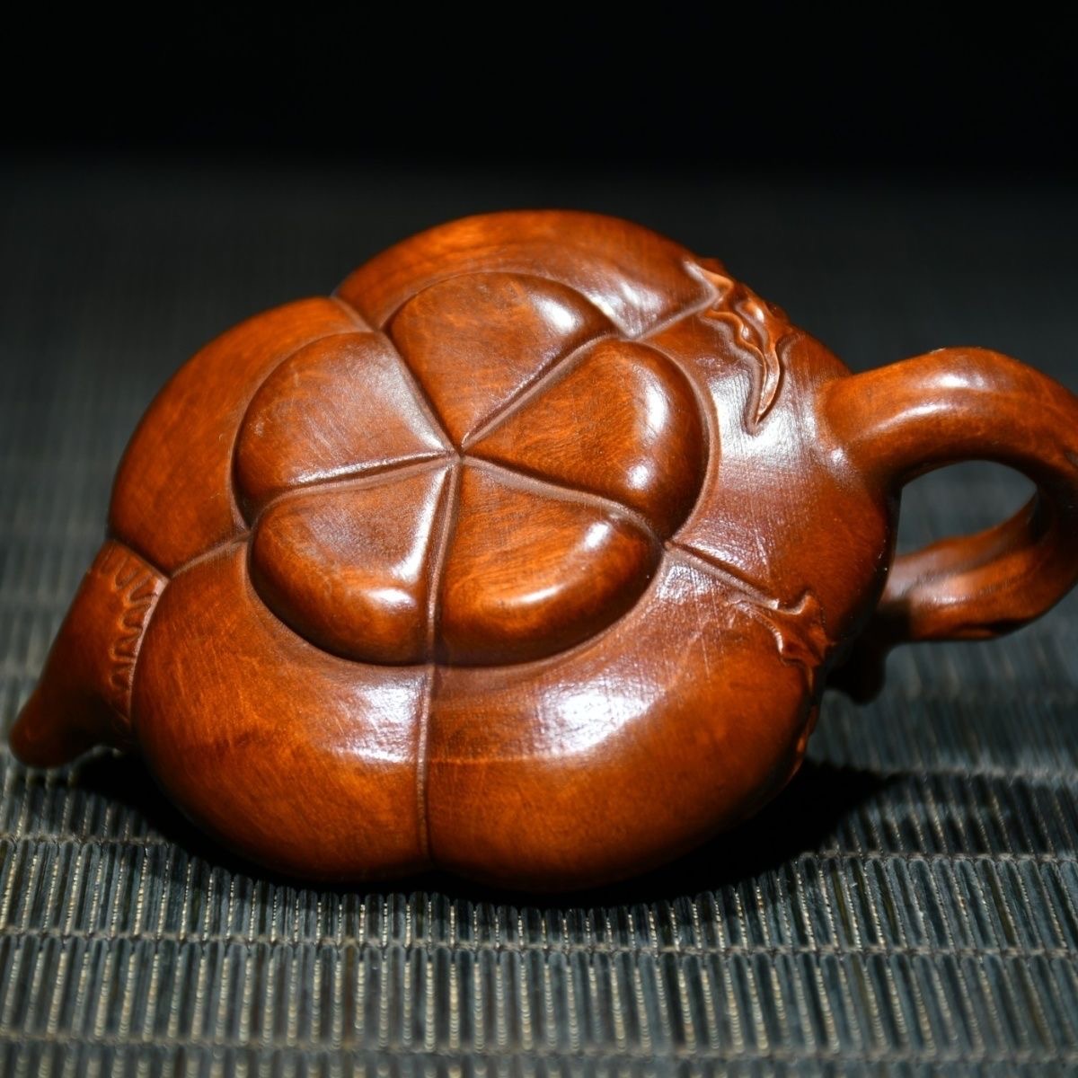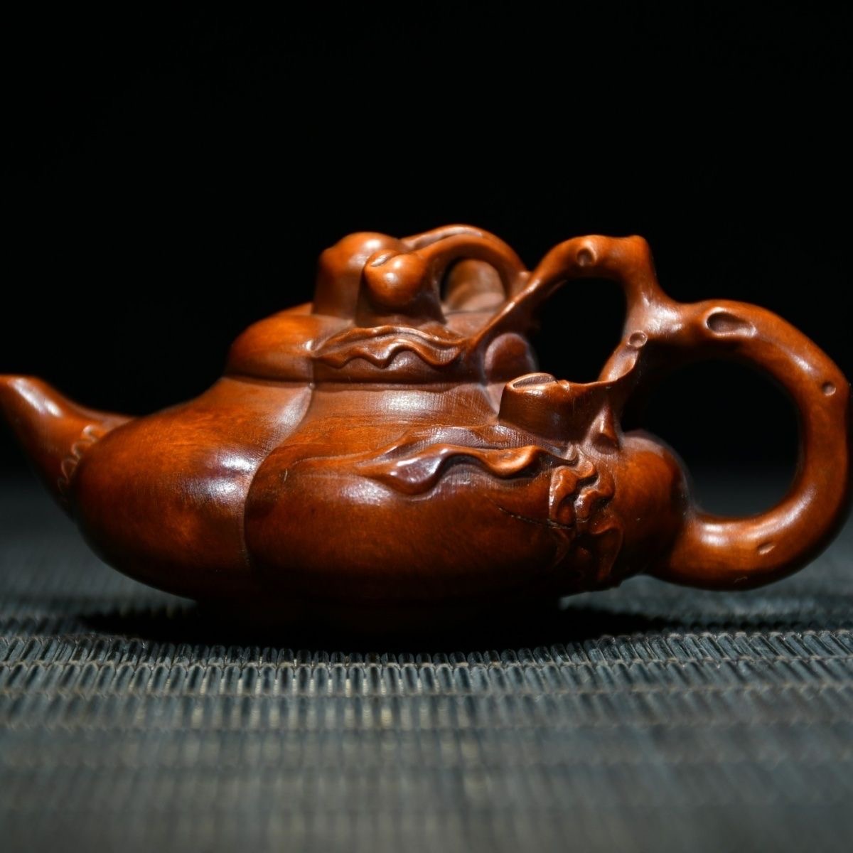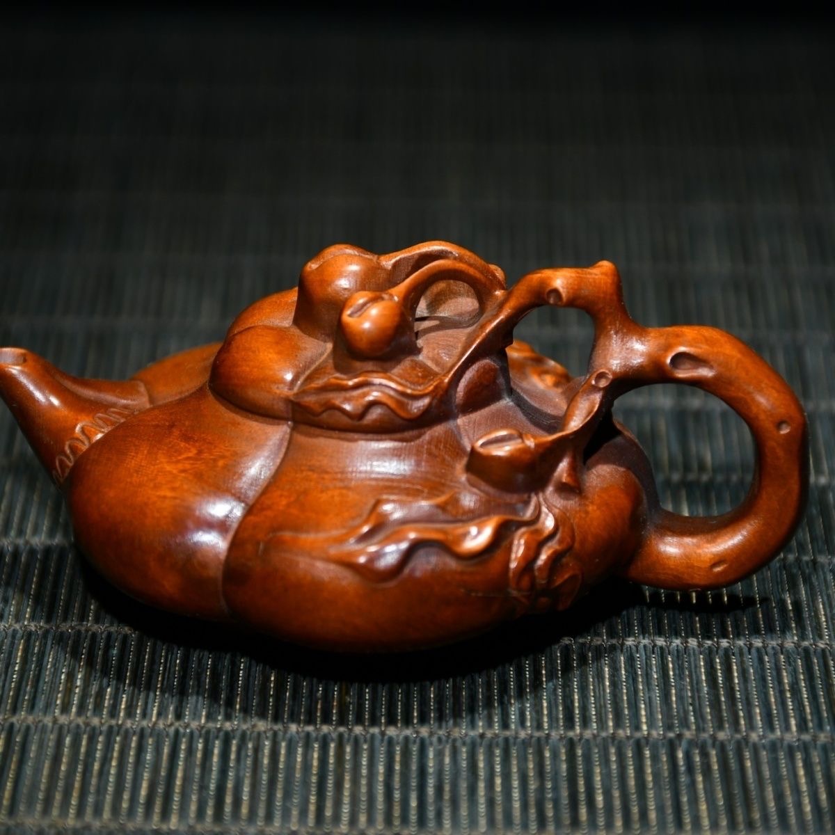 Chinese Antique Boxwood Carving Teapot Statue Home Decorative Collection Curio