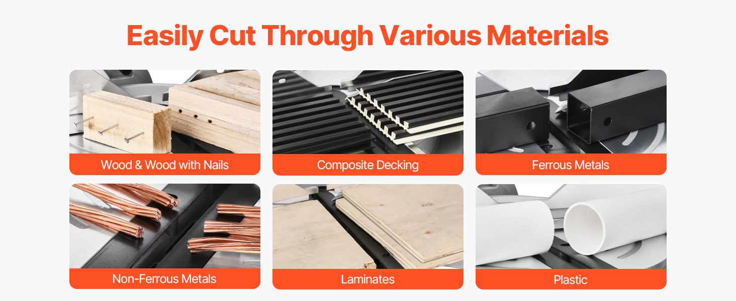 Our power miter saw is capable of cutting through a variety of materials such as wood, plastic, and more. It delivers fast, smooth cuts with clean edges, making it your go-to tool for all your cutting needs—whether for woodworking or other DIY projects.