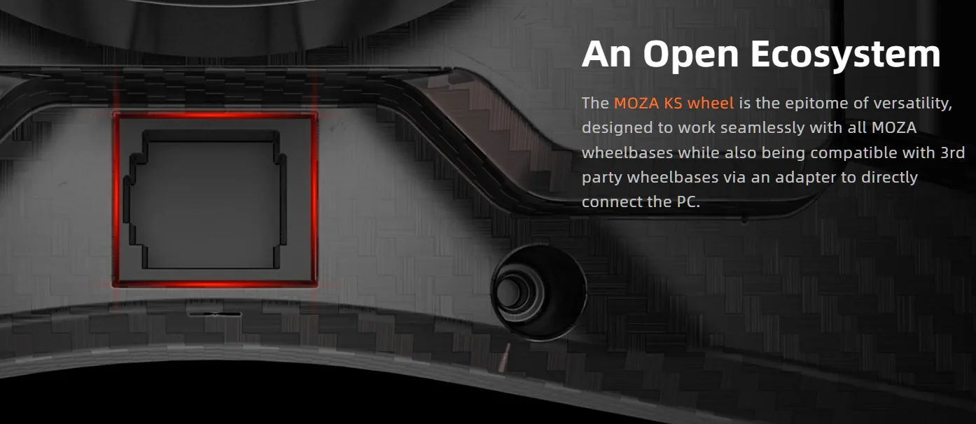 Compatible with all MOZA bases and with 3rd Party Wheelbases via an adapter to directly connect the PC