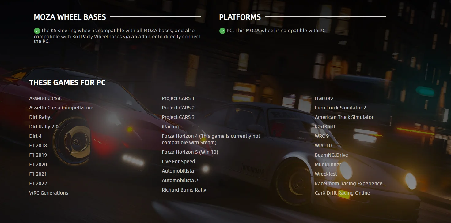 Compatibility :All MOZA wheelbases and 3rd party wheelbases