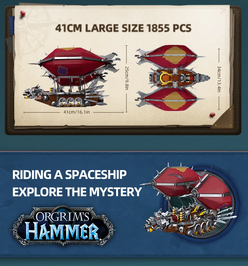1.With a total of 1855 pieces, this building block set offers a challenging yet rewarding assembly process that will keep children engaged for hours. They can follow the step-by-step instructions to construct the Orgrim's Hammer spaceship, complete with intricate details and unique tribal-inspired elements. As they piece together the blocks, their fine motor skills and problem-solving abilities will be put to the test.