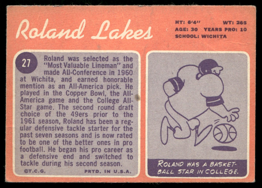 | 1970 Topps Roland Lakes San Francisco 49ers #27 *Low Grade* *A* |
