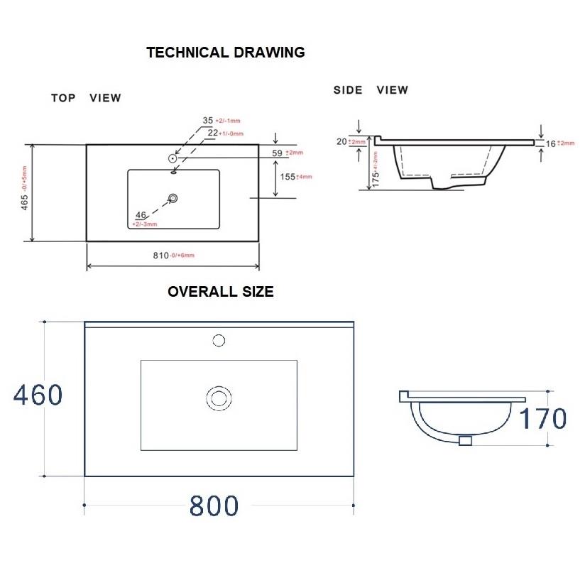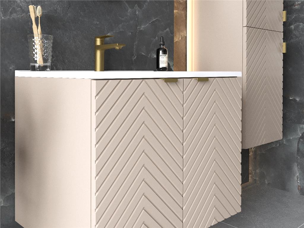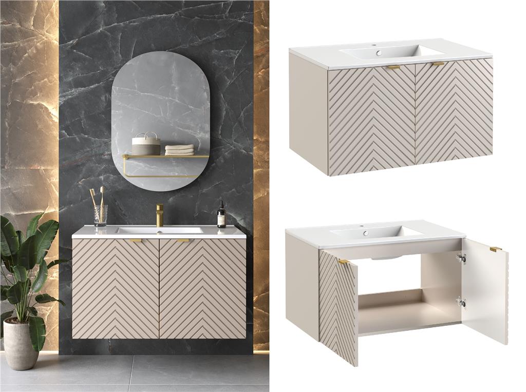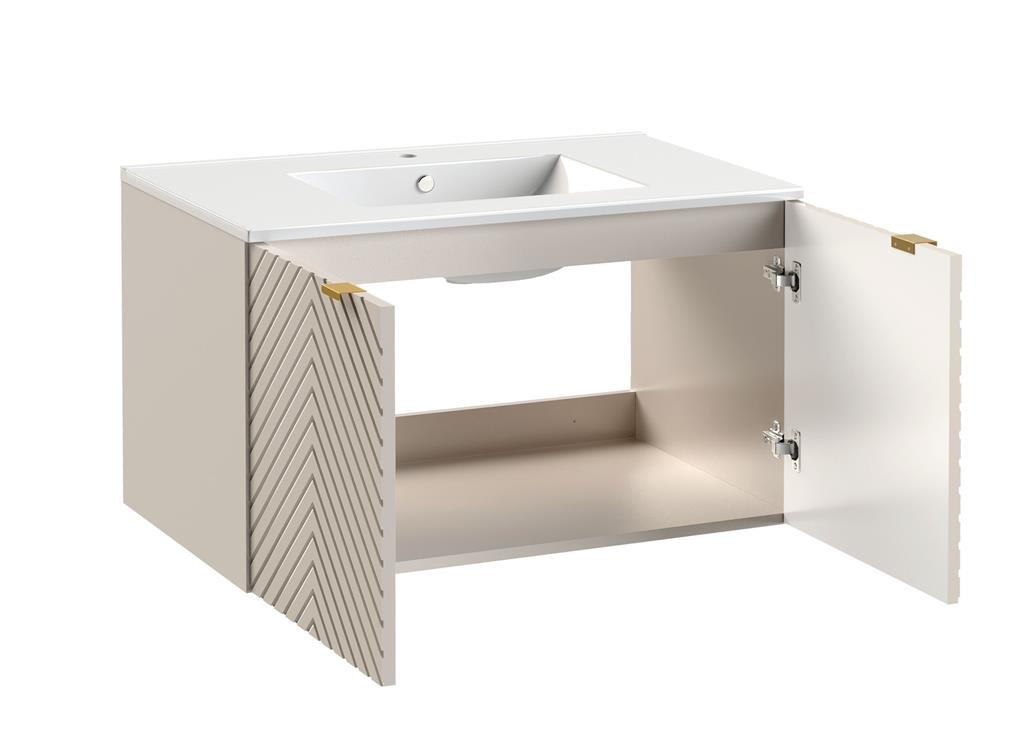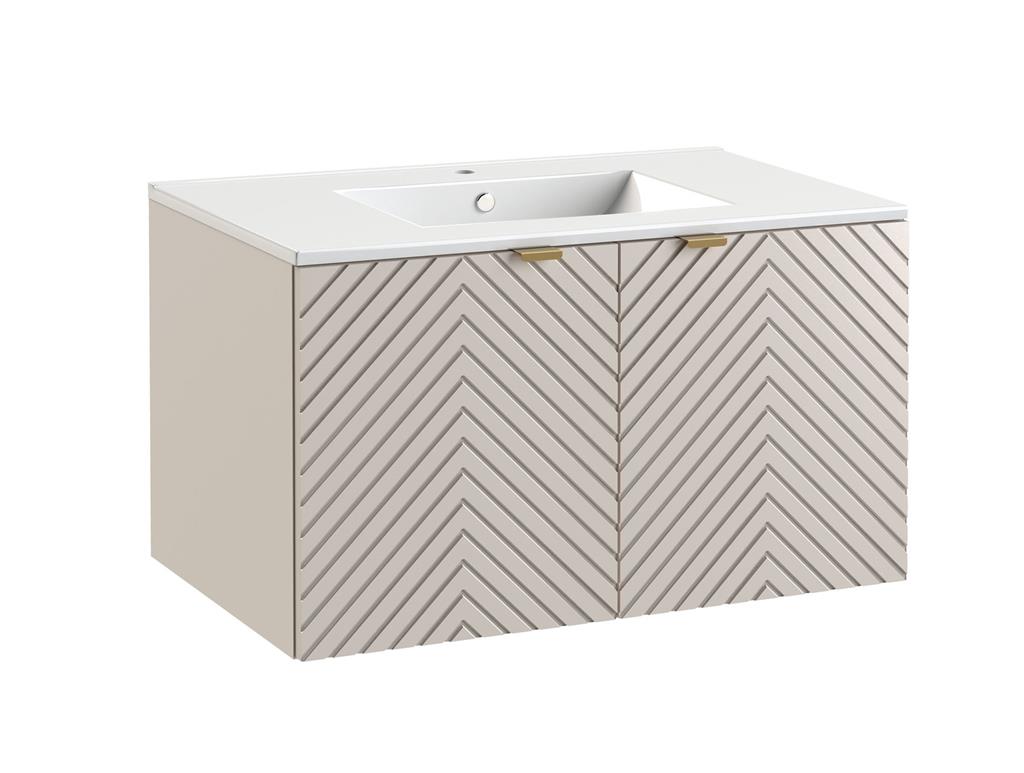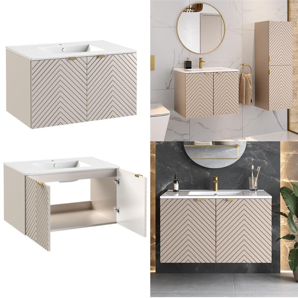 Bathroom Vanity Unit Sink Basin 800mm Modern Wall Hung Cabinet Fluted Beige Cama