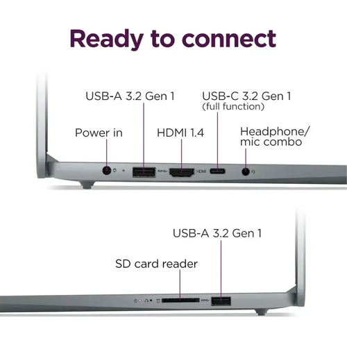 Ports: 2x USB 3.2 Gen 1 Type-A, 1x USB Type-C, 1x HDMI, 1x Headphone/Microphone combo jack, 1x SD card reader