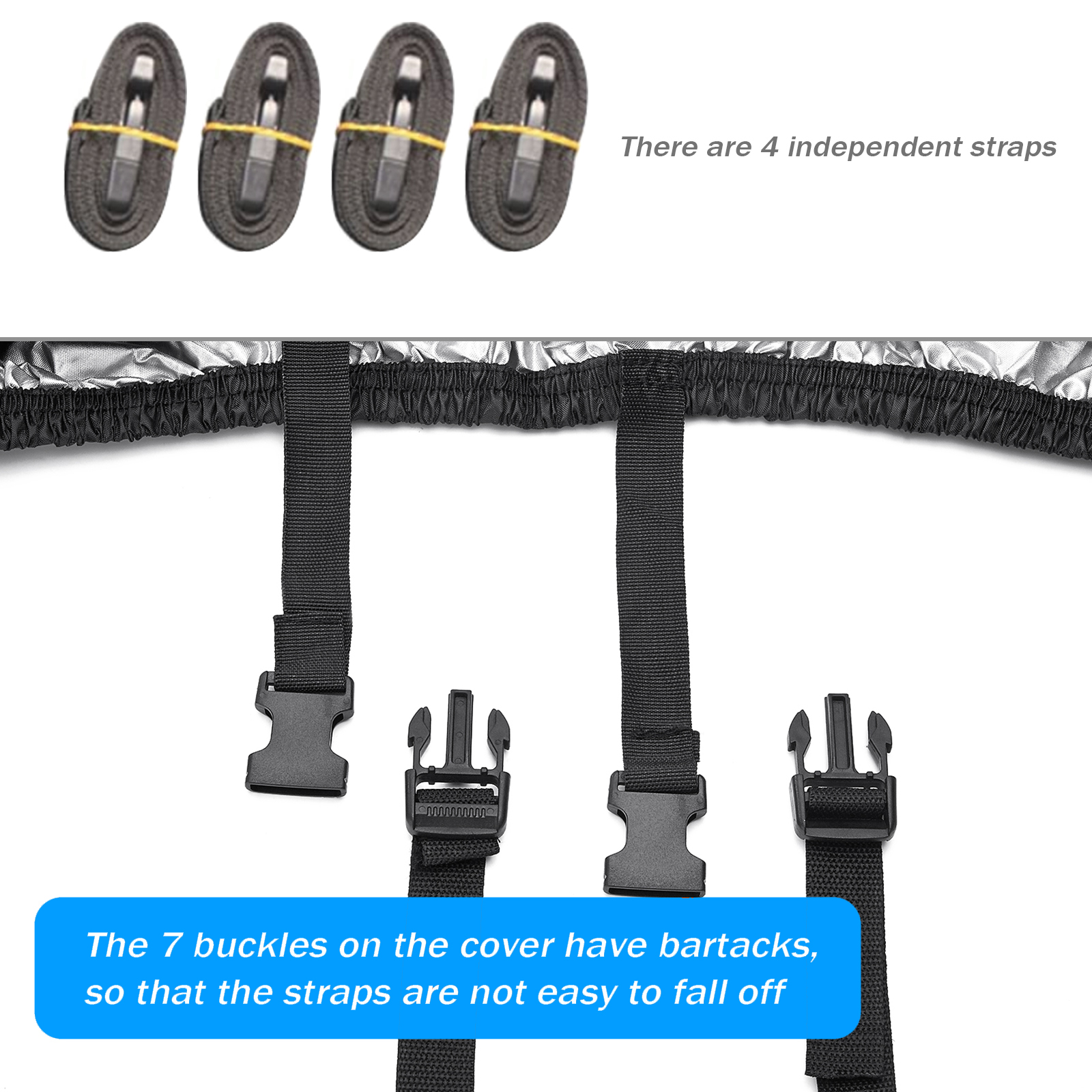 【Buckles, straps and vents】Buckles, straps and vents: 4 independent straps and 8 buckles can be used to increase the safety of the cover. With rear vents, it can reduce wind generated during transportation