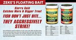 Zeke's Sierra Gold Floating Trout Bait 0920, 1.5 oz, Garlic-Yellow