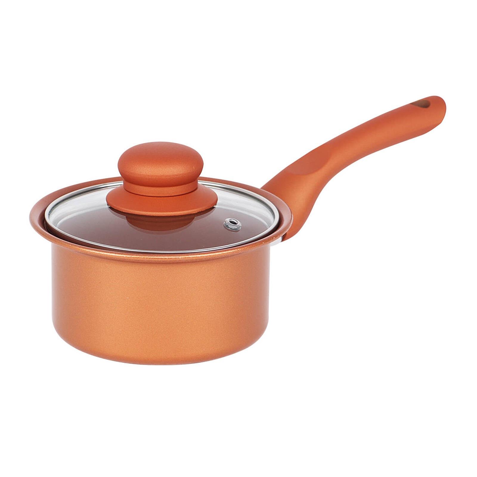 Copper 8 Piece Carbon Steel Non Stick Kitchen Cookware Set Cooking Pot Frying Pan Saucepan With Glass Lids