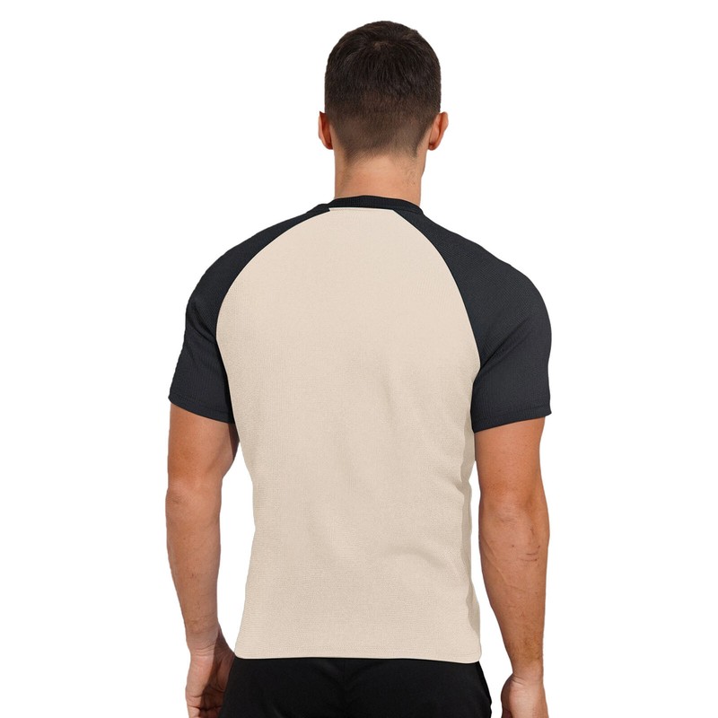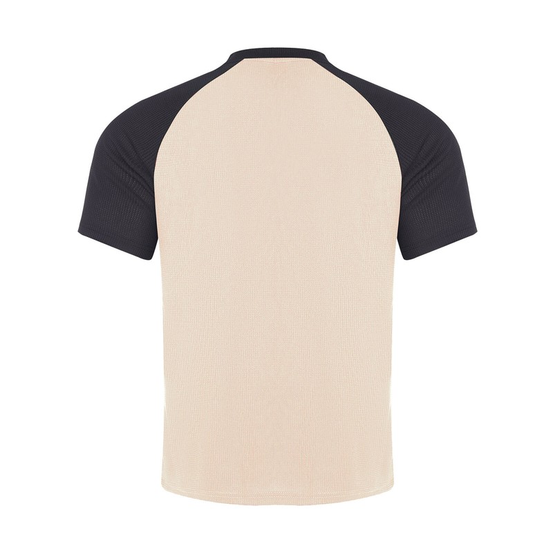 Crafted from a blend of polyester and spandex, this T-shirt offers excellent stretch and comfort, making it suitable for various activities.