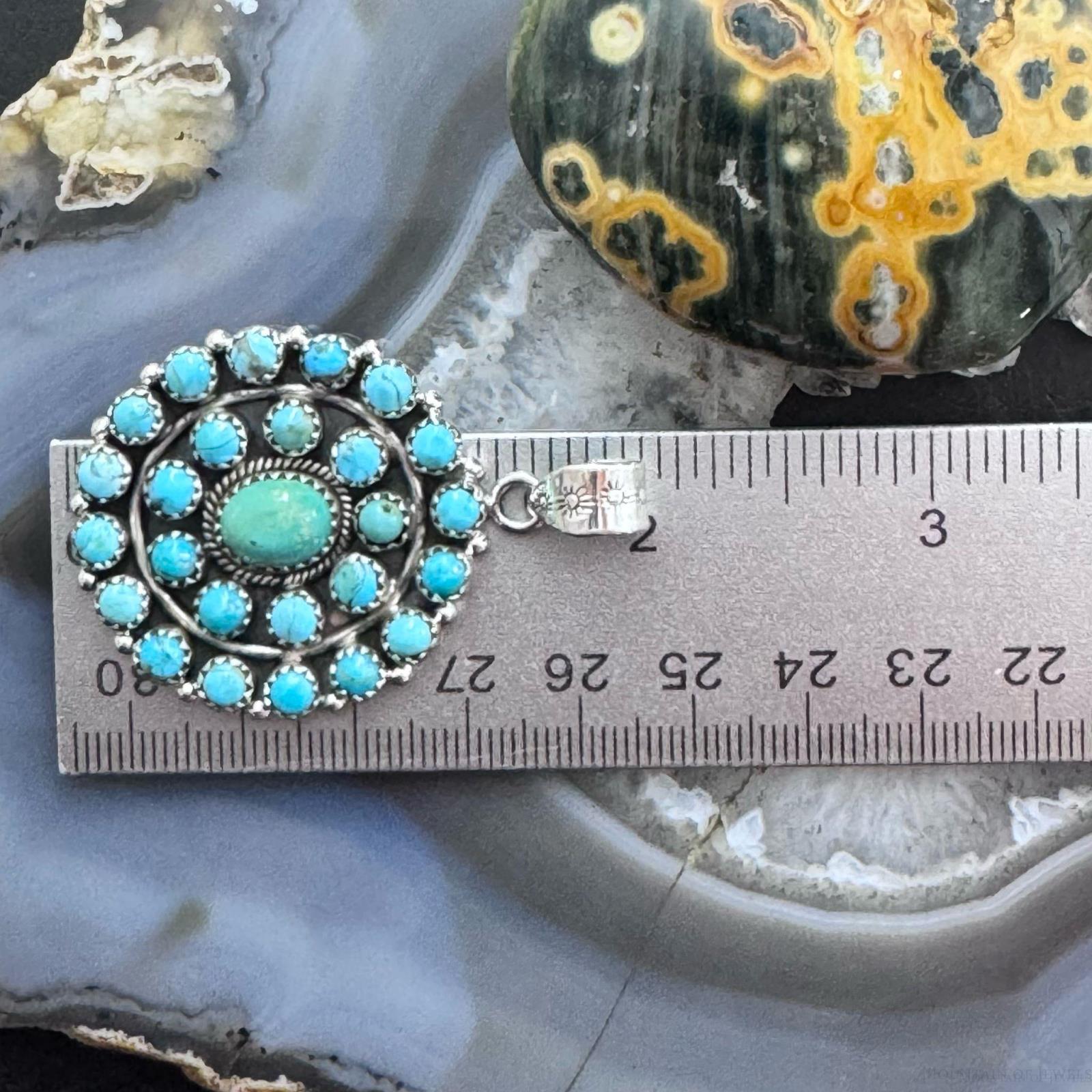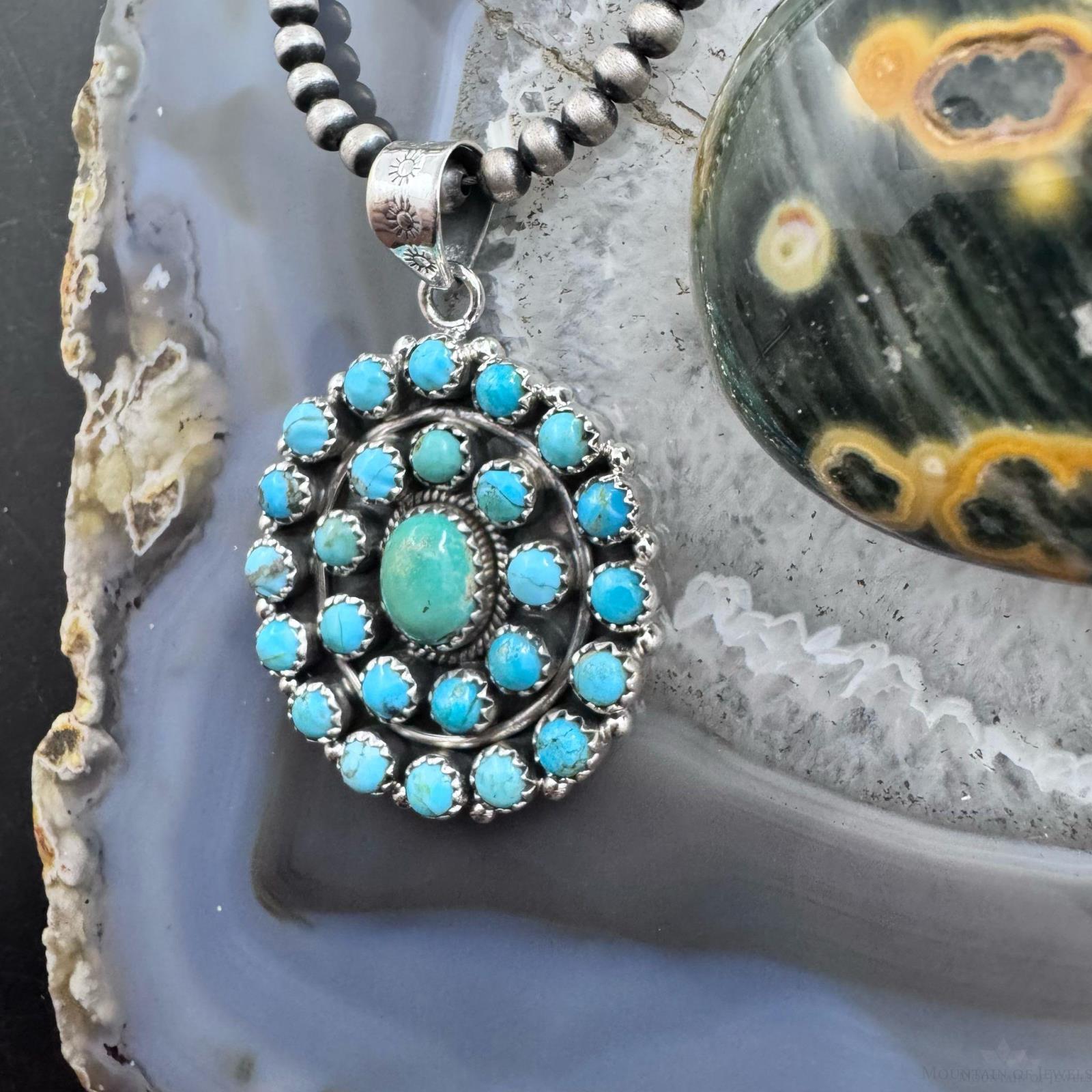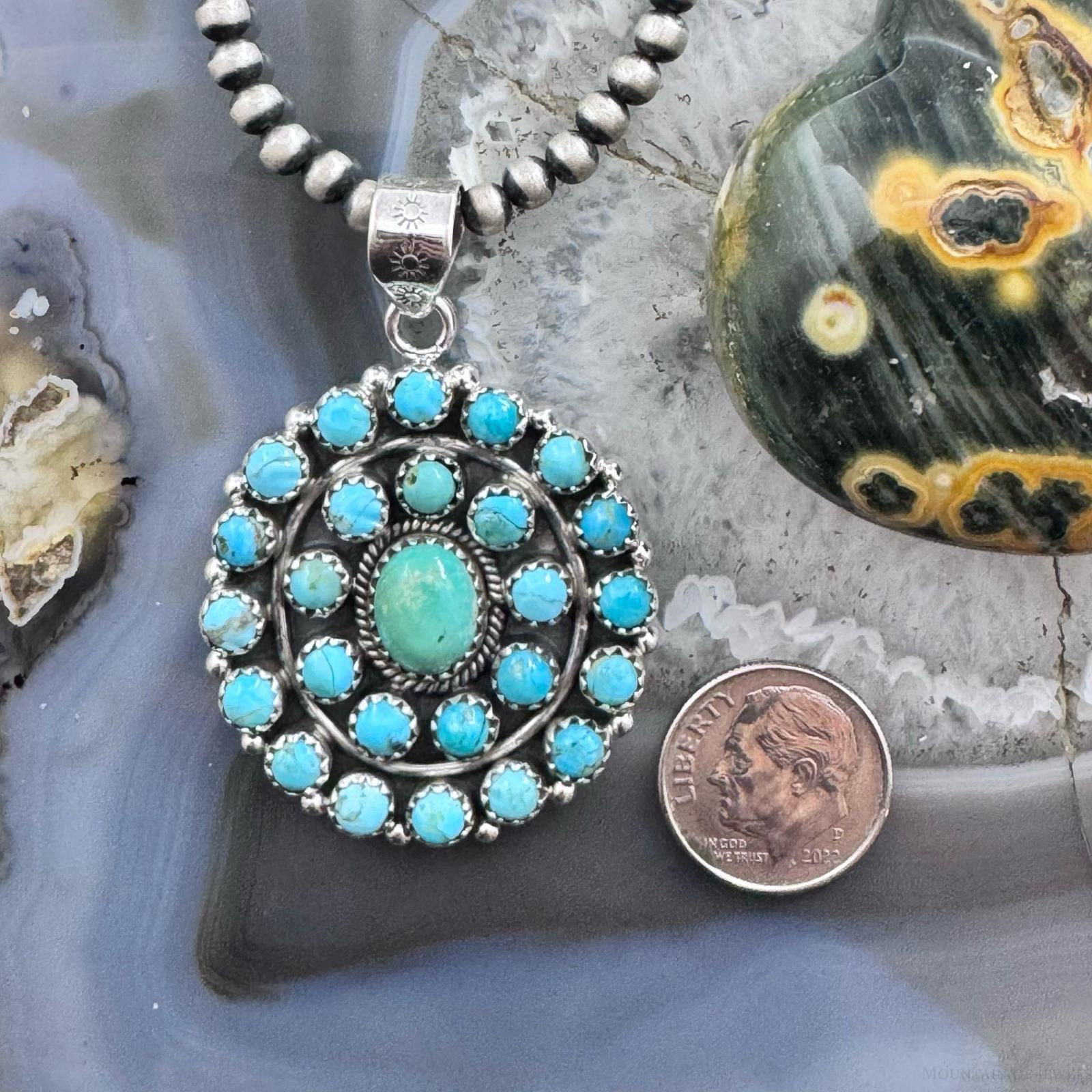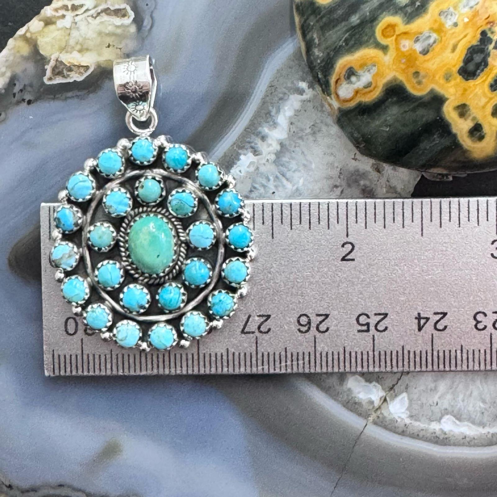 Sterling Silver Southwestern Style Rounded Turquoise Round Cluster Pendant For Women.