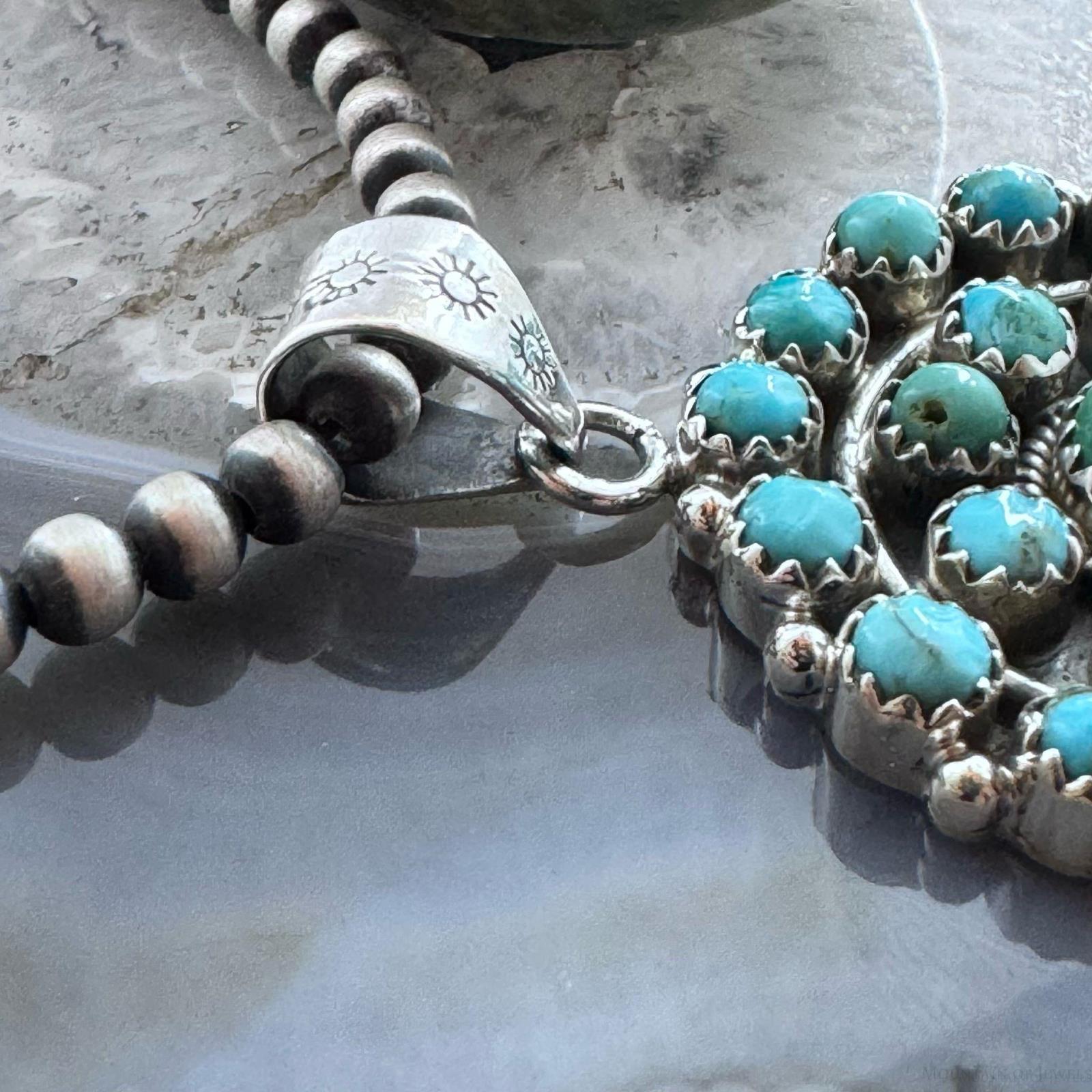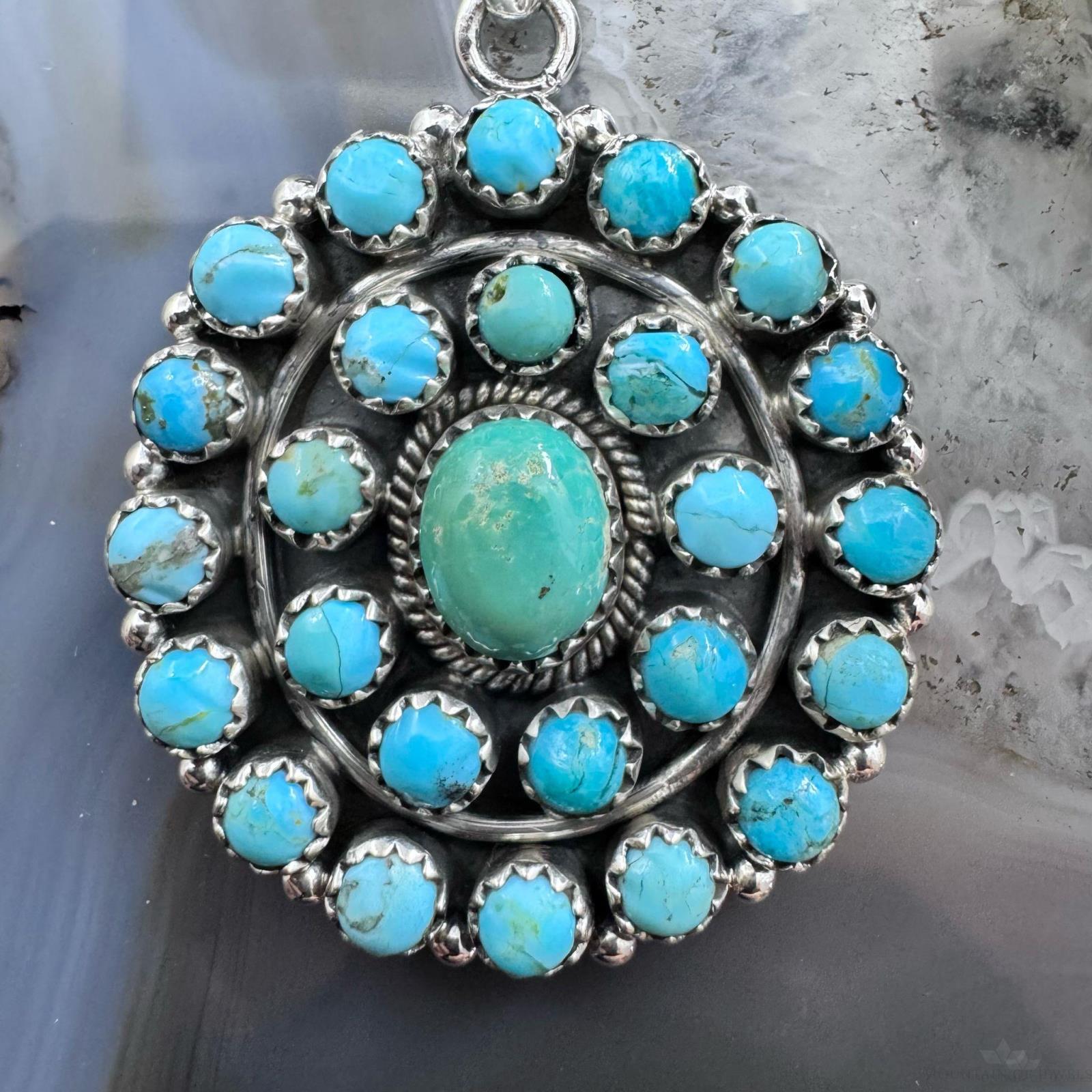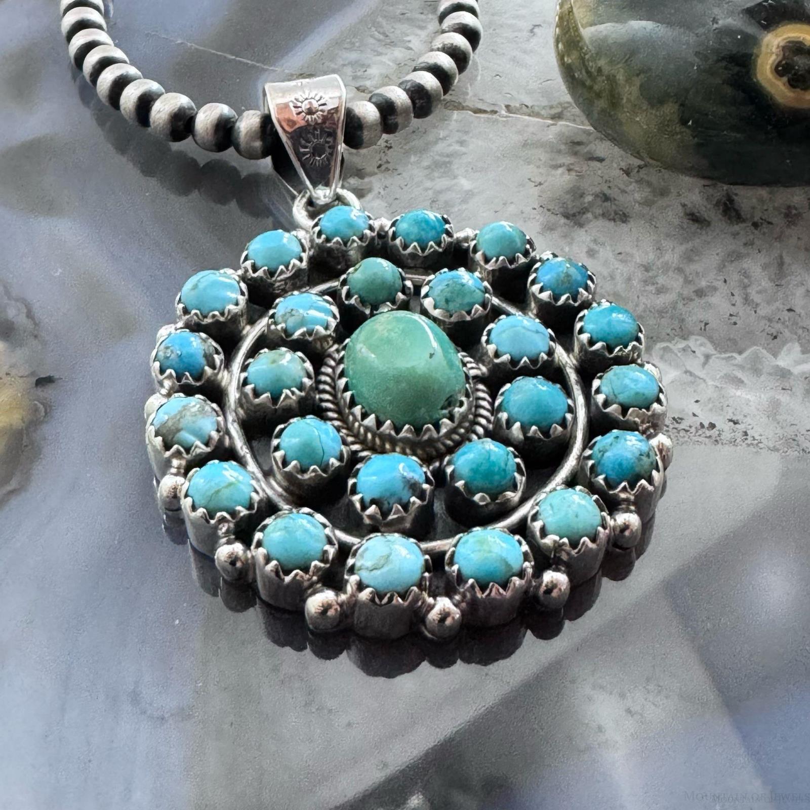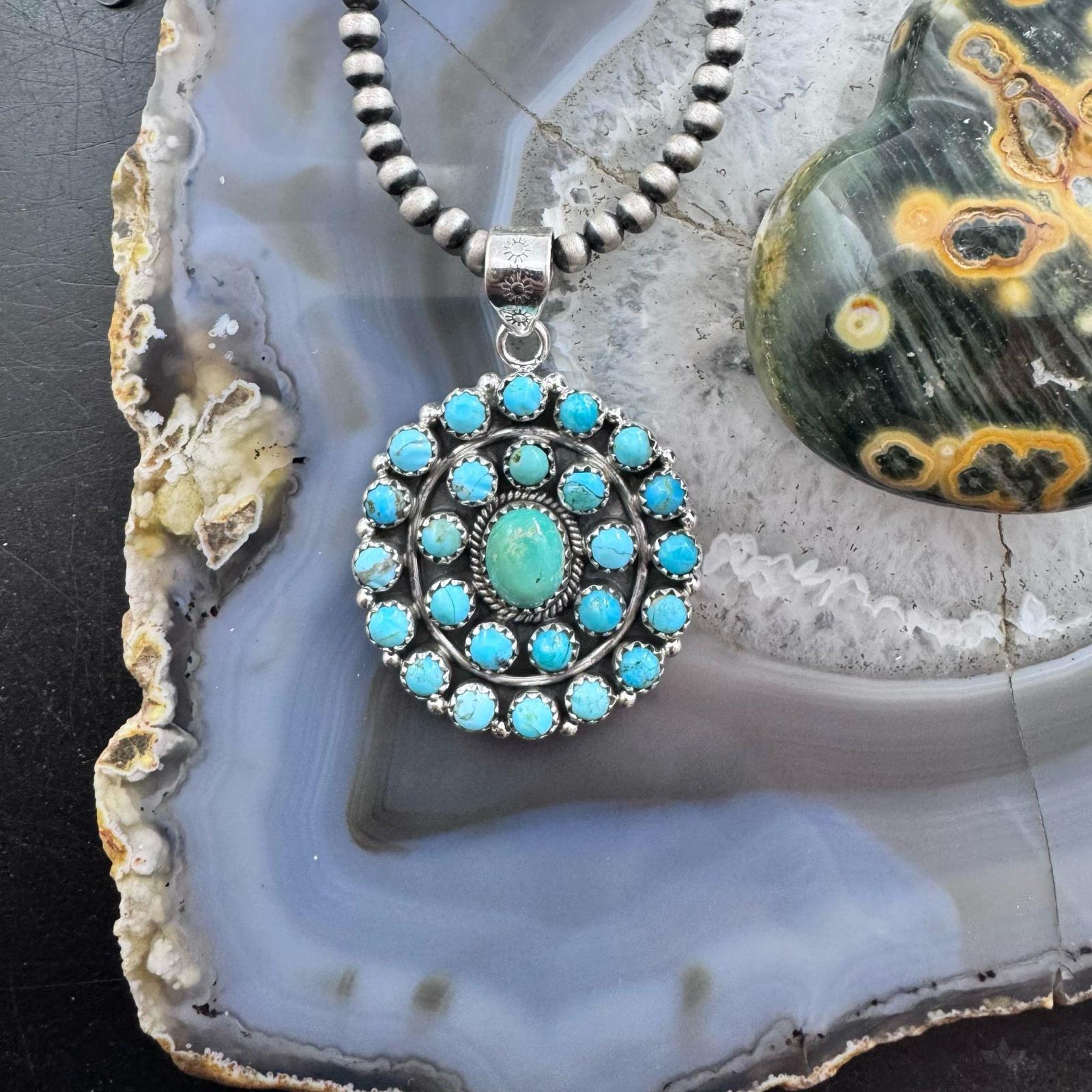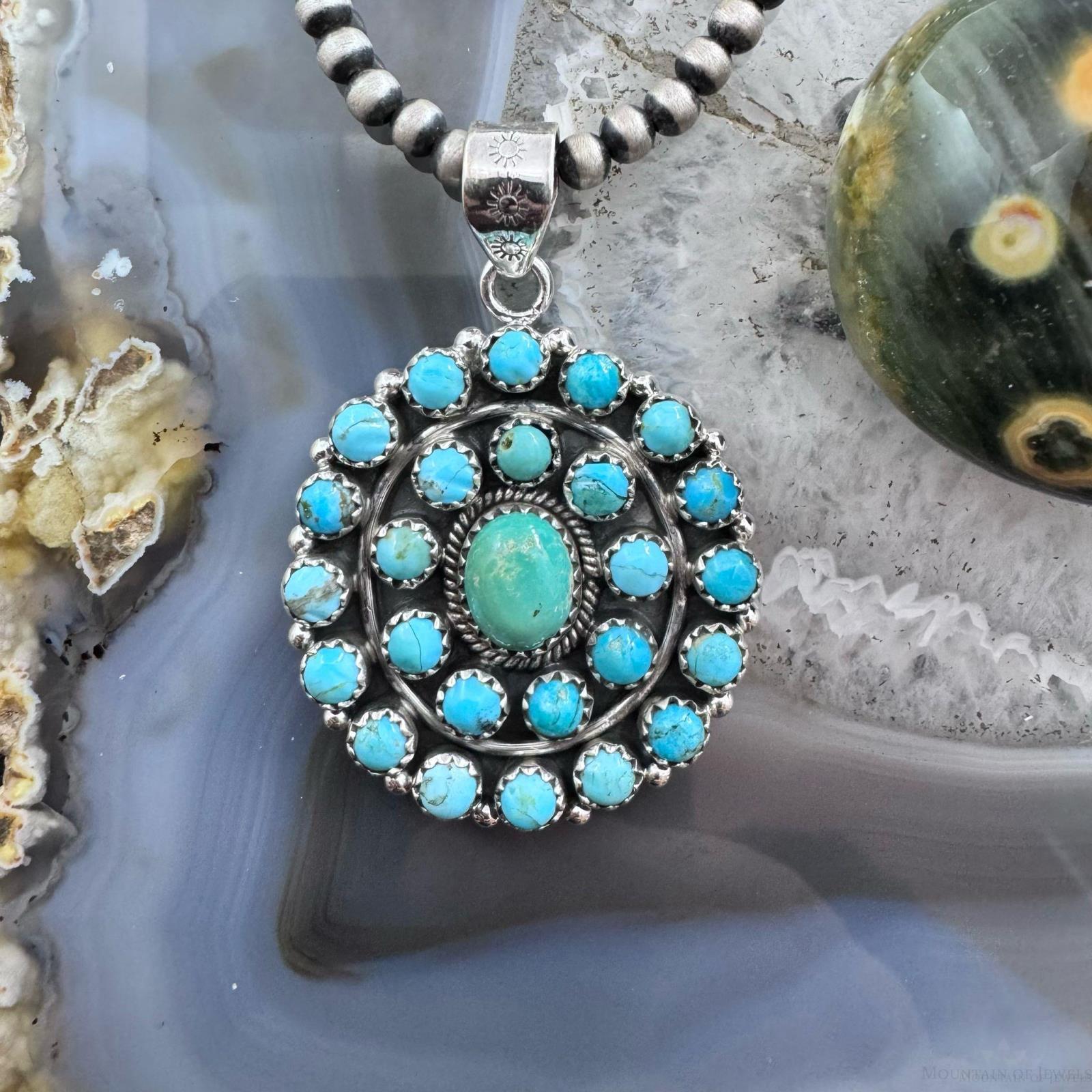 Sterling Silver Southwestern Style Rounded Turquoise Round Cluster Pendant For Women.