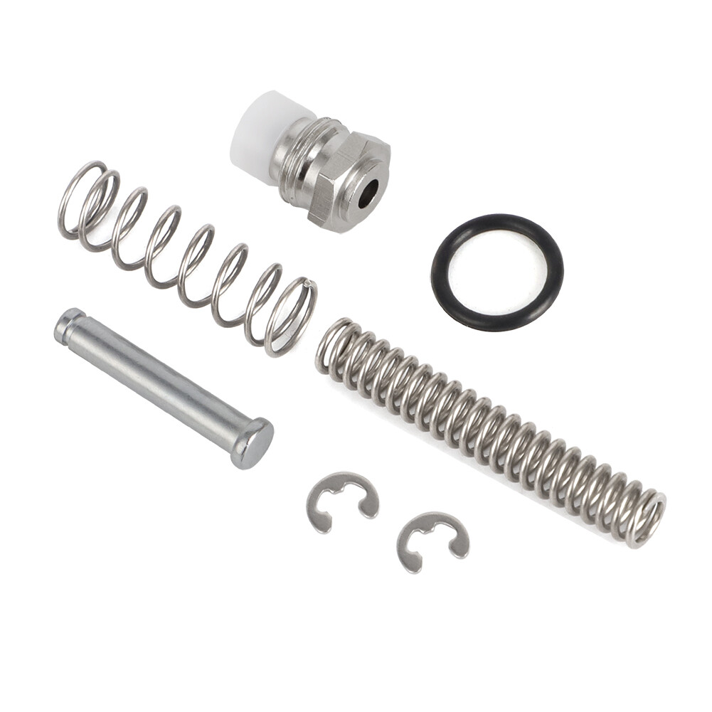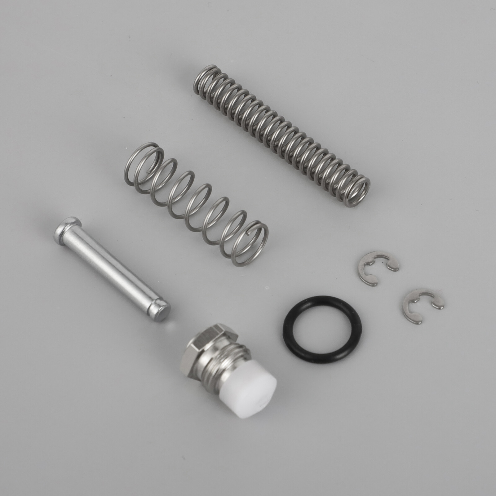 The kit includes the cartridge packing assembly, air valve spring, fluid valve spring, air valve o-ring, trigger stud, and trigger stoppers.