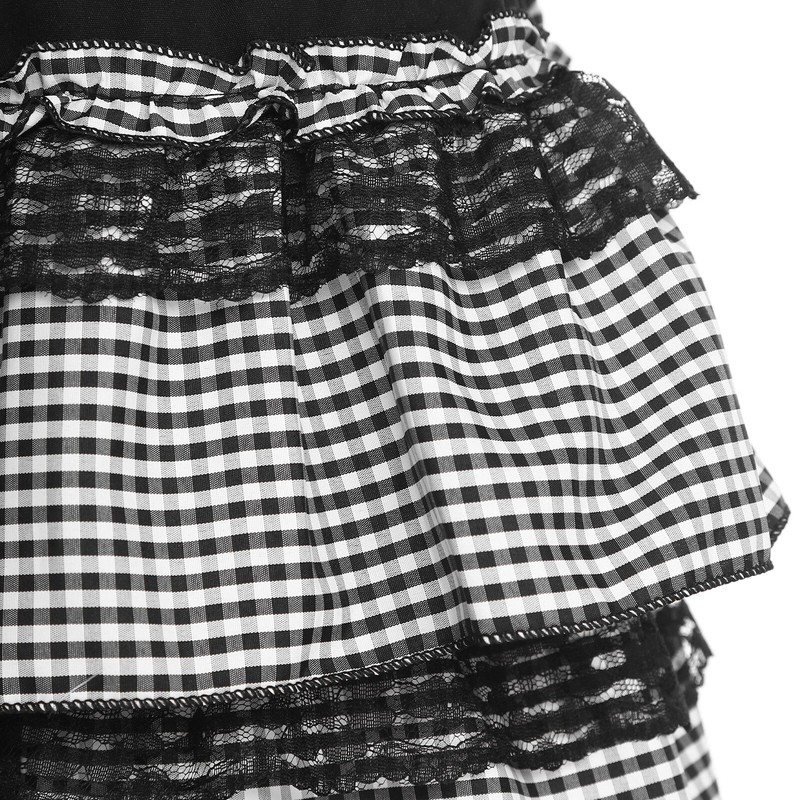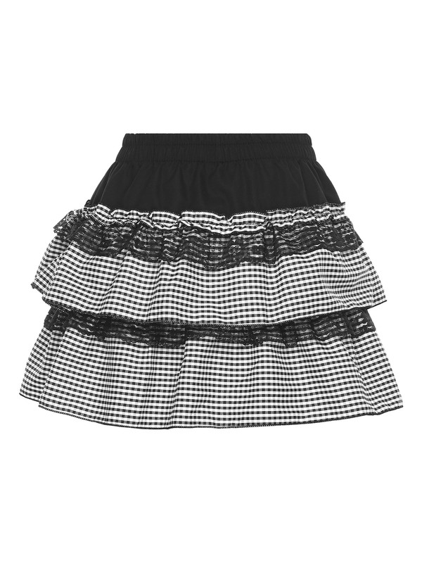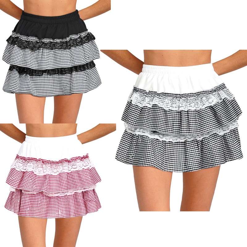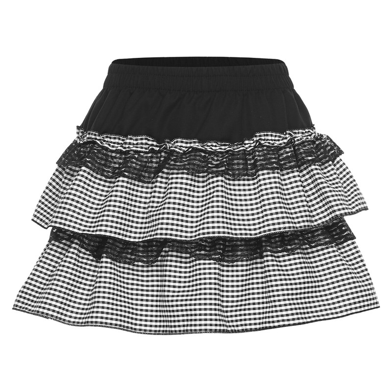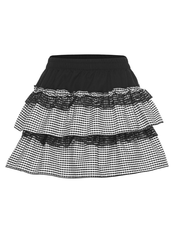 The ruffled lace and plaid tiered design bring a touch of vintage charm while staying on-trend, adding a unique and stylish element to your outfit.