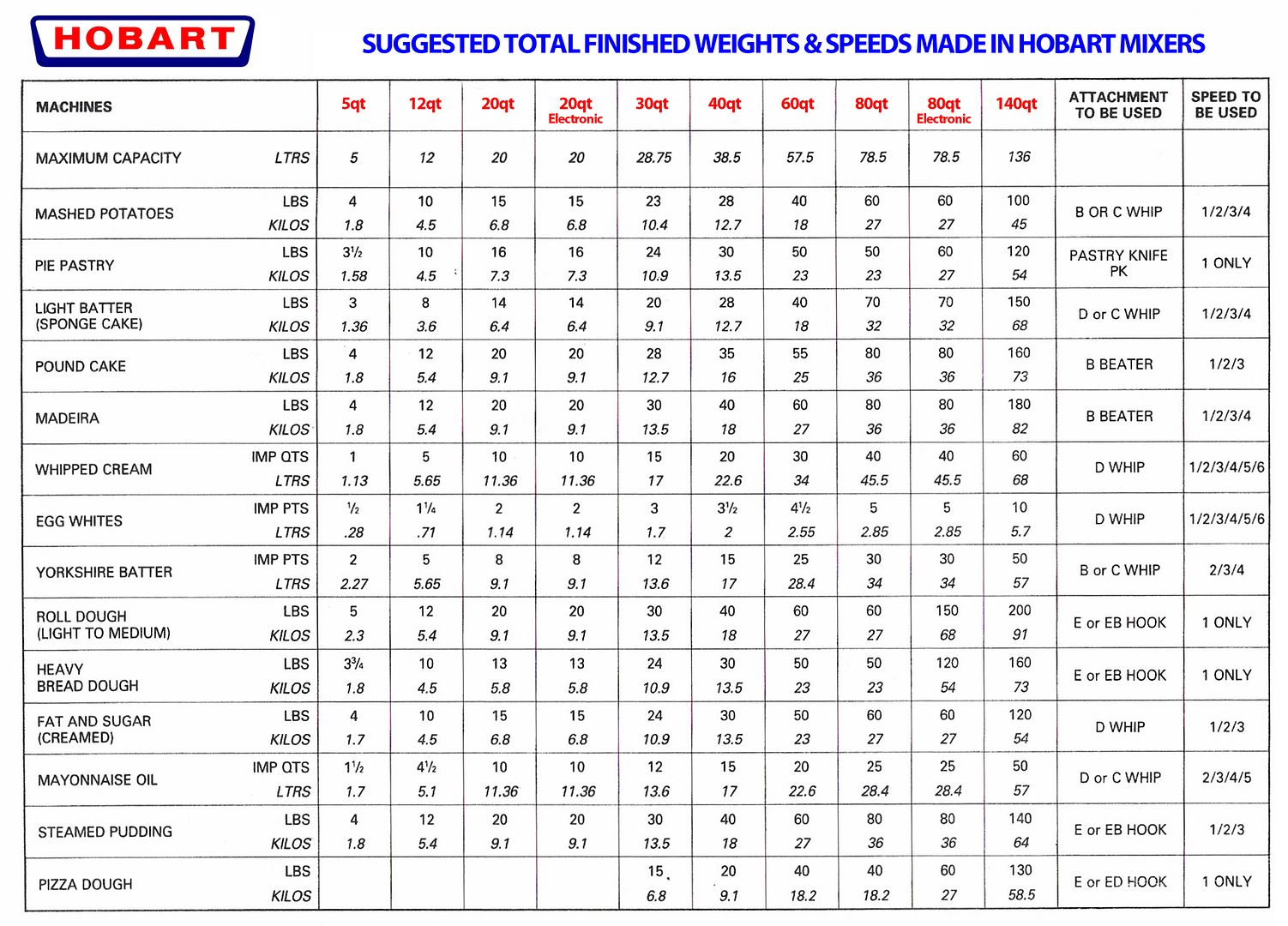 The Hobart mixer sizes are referred to in quart's, one quart is more or less one litre, if you are unsure of what size your Hobart bowl is then measure how many litres of liquid you can fit into the bowl to give you a rough idea on what quart size attachment you need, all the different sizes, 12, 20, 30, 60 and 80 qt are available in our ebay shop under the mixer section. The photo below and item title details what type and quart size you are purchasing for this listing.