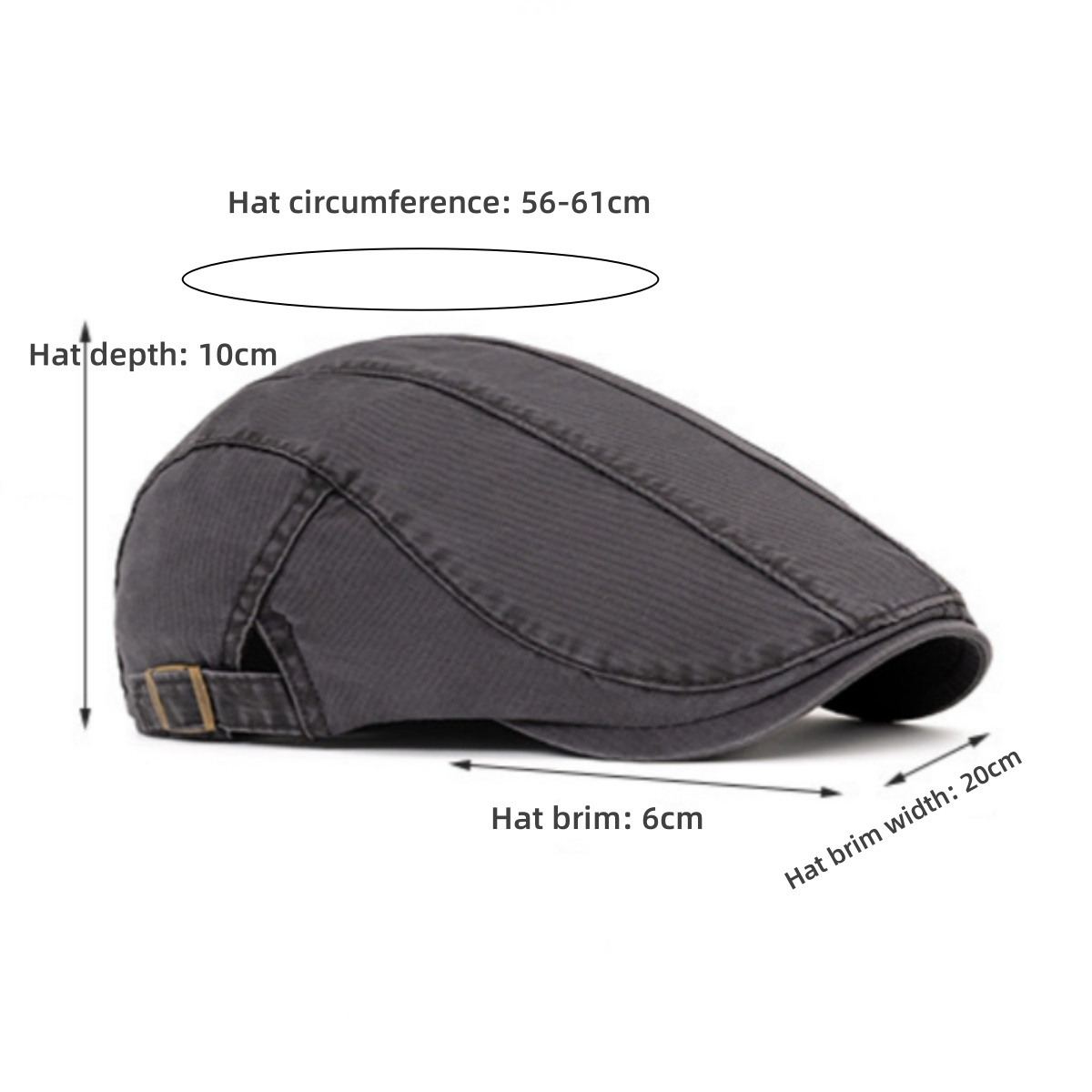2.Adjustable size: 56-61cm, Hat brim: 6cm,Hat depth: 10cm.There are adjustable buckles on both sides, which can be easily adjusted according to the head size.