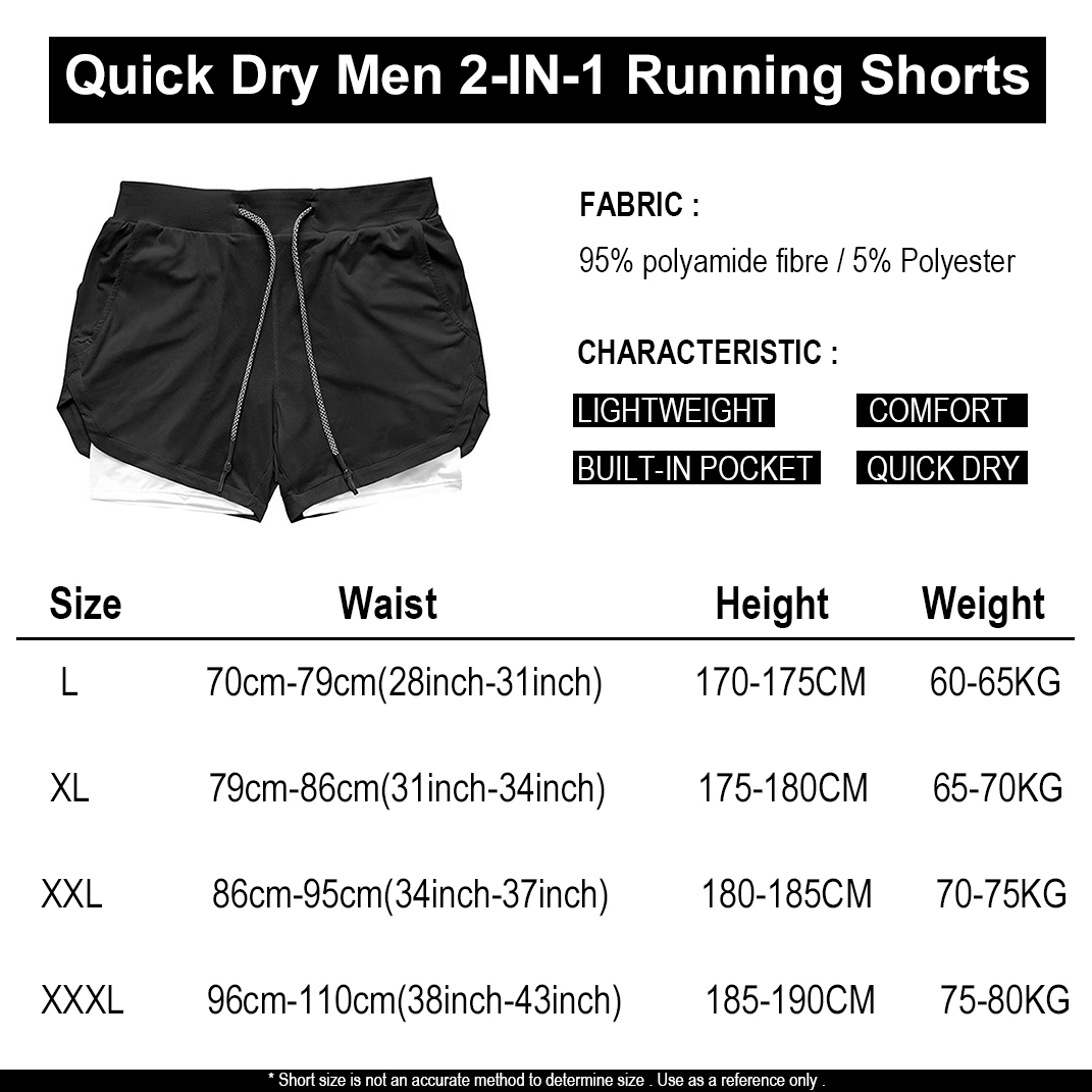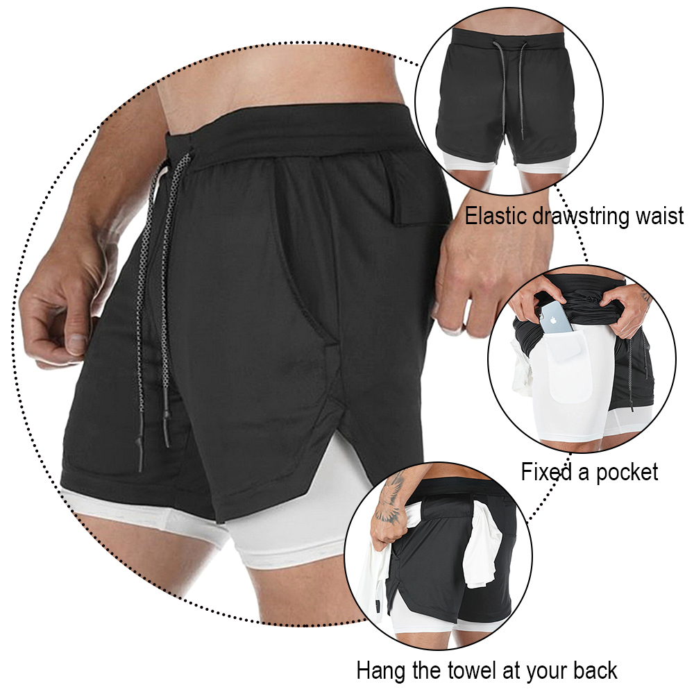 Quick Dry Men 2-IN-1 Running Shorts With Phone Pocket