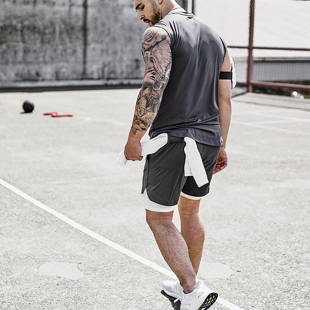 - MULTI DESIGN - Joggers shorts have side pockets and built-in pocket,and concealed zip pocket,quick-dry fabric to keep you comfortable for wear, built-in shorts with compression fit offers support to thigh muscle to improve performance.