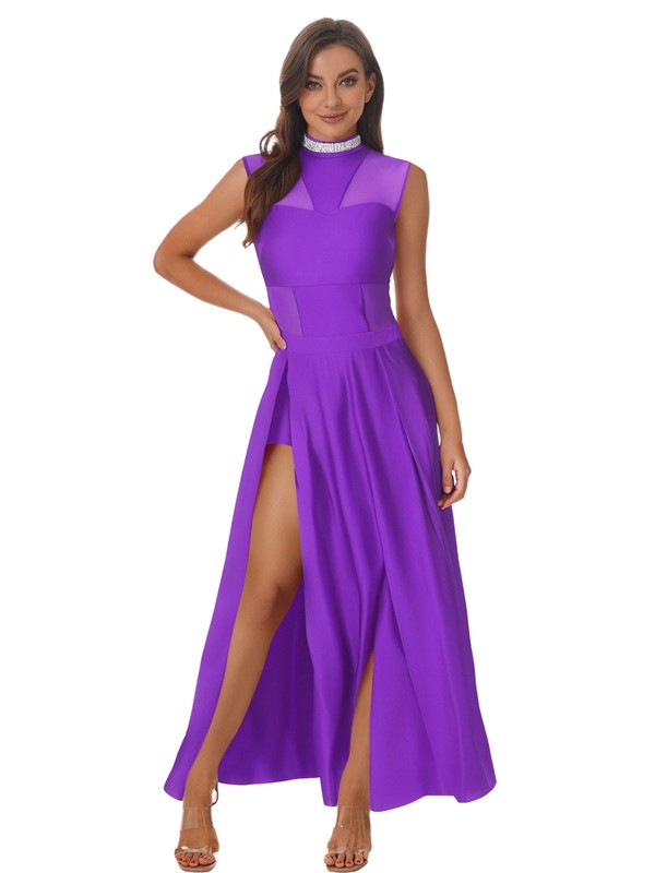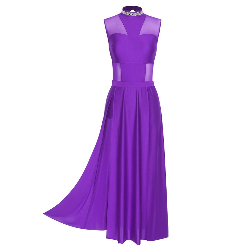 The slit hem maxi skirt adds movement and fluidity, allowing for easy dance steps and is suitable for lyrical dance performances, dance classes, or other special events.