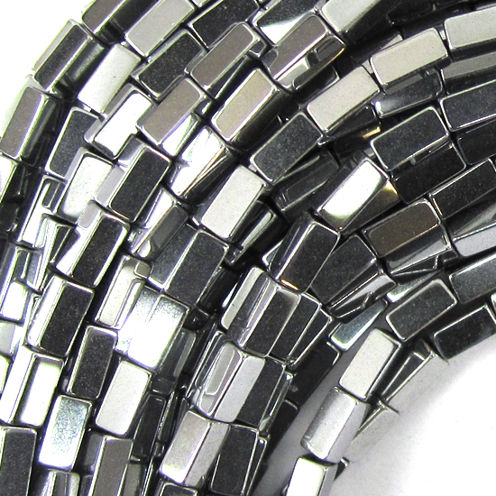Silver color hematite side tube beads. The strand is 16" long, about 2x4mm.