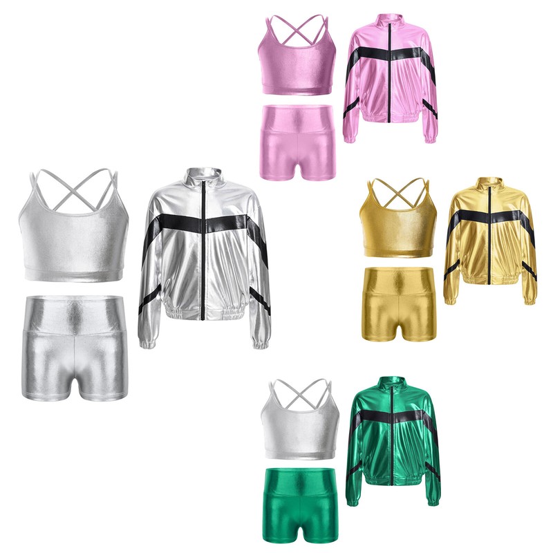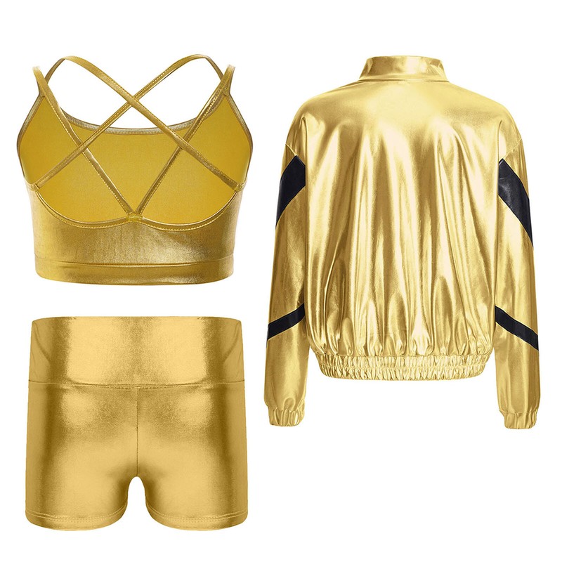 Girl’s outfit with metallic appearance is eye-catching enough to make your child the spotlight in any performance.