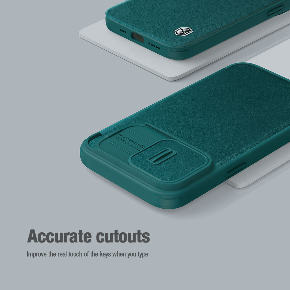 100% Original Nillkin Qin Slim Plain Leather Flip Case For Apple iPhone 14 /15 Series With packing