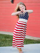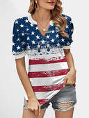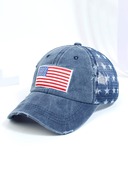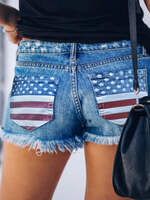 Chic denim shorts, high-waist denim shorts with American flag print. Cool and stylish.
