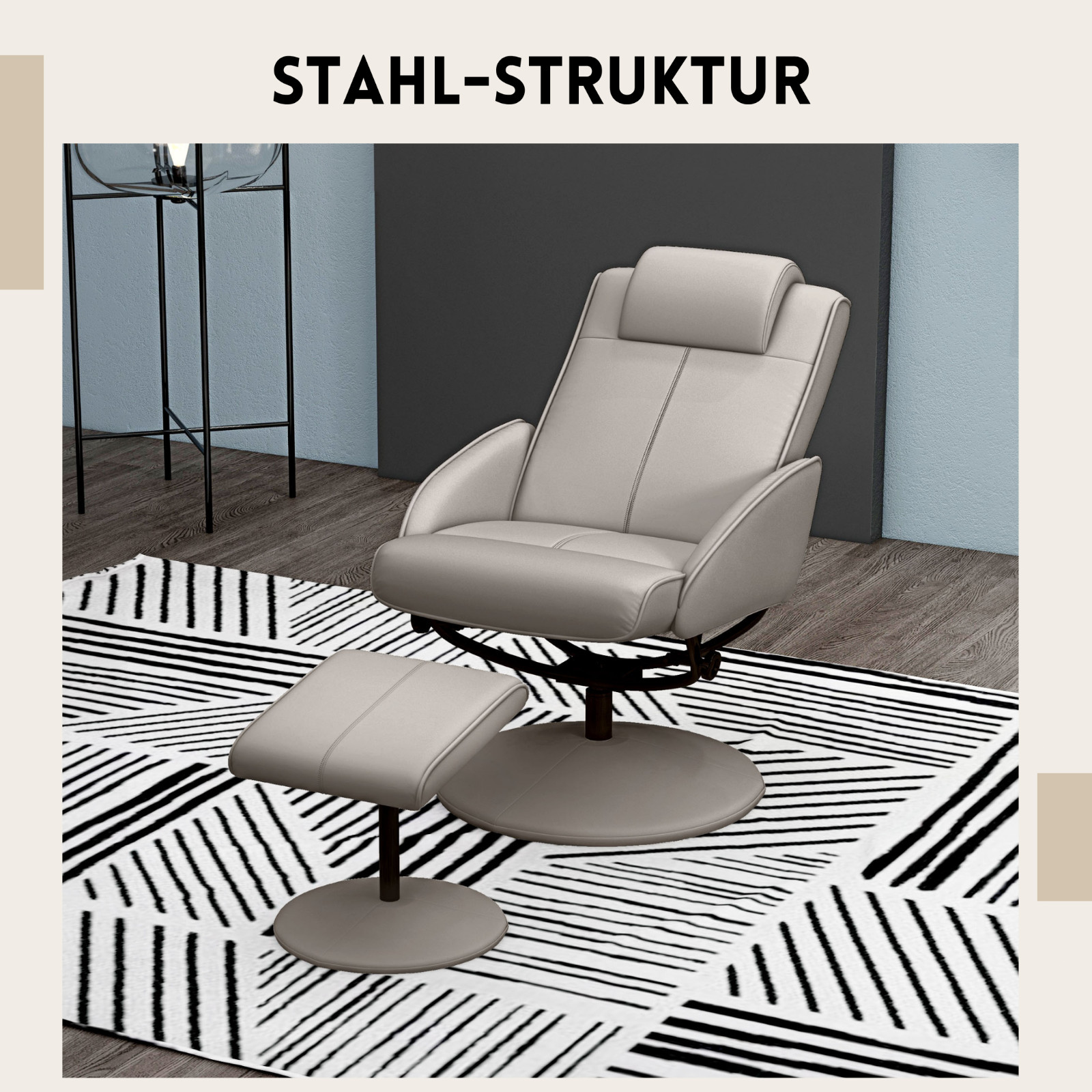 Belastung: 120 KG für den Sessel; 100 KG für den Fußhocker