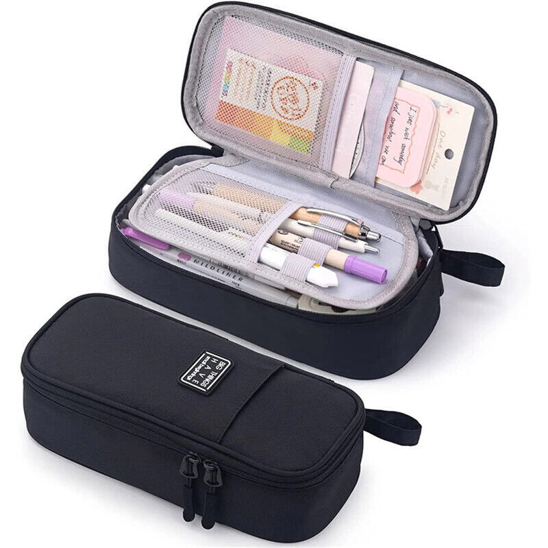 Pencil case is for storing and organizing pens. Suitable for most of pens and pencils, clips, glue stick, correction tape, stapler, erasers, calculator, scissors and other items.