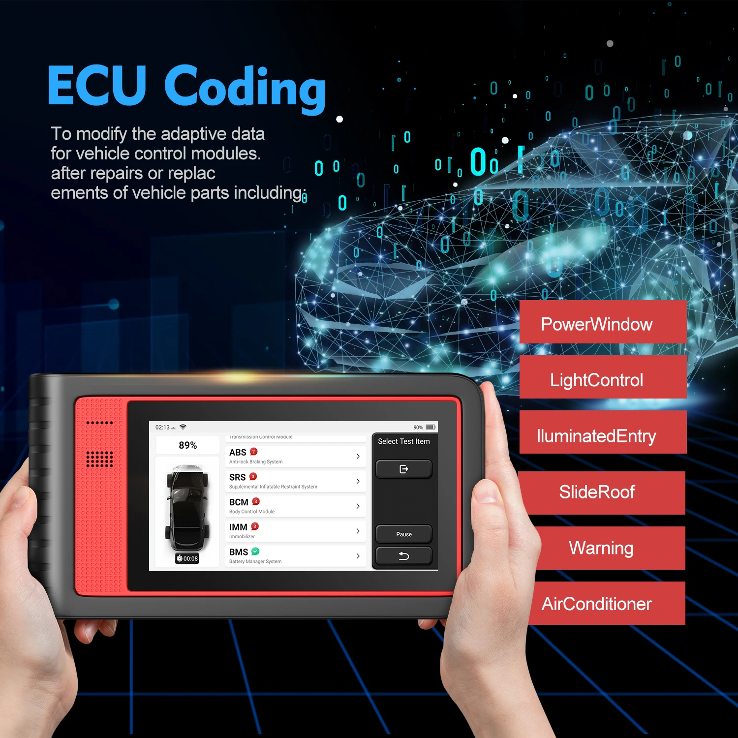 The ECU Coding of this diagnostic tool can work on most vehicle makes. It is used to reprogram adaptive data for vehicle control modules after repairs or replacements of vehicle parts.