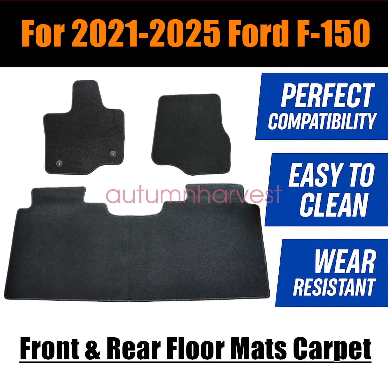 OEM Replacement Black Velour Front & Rear Floor Mats Carpet Fits 2021-2025 Ford F150