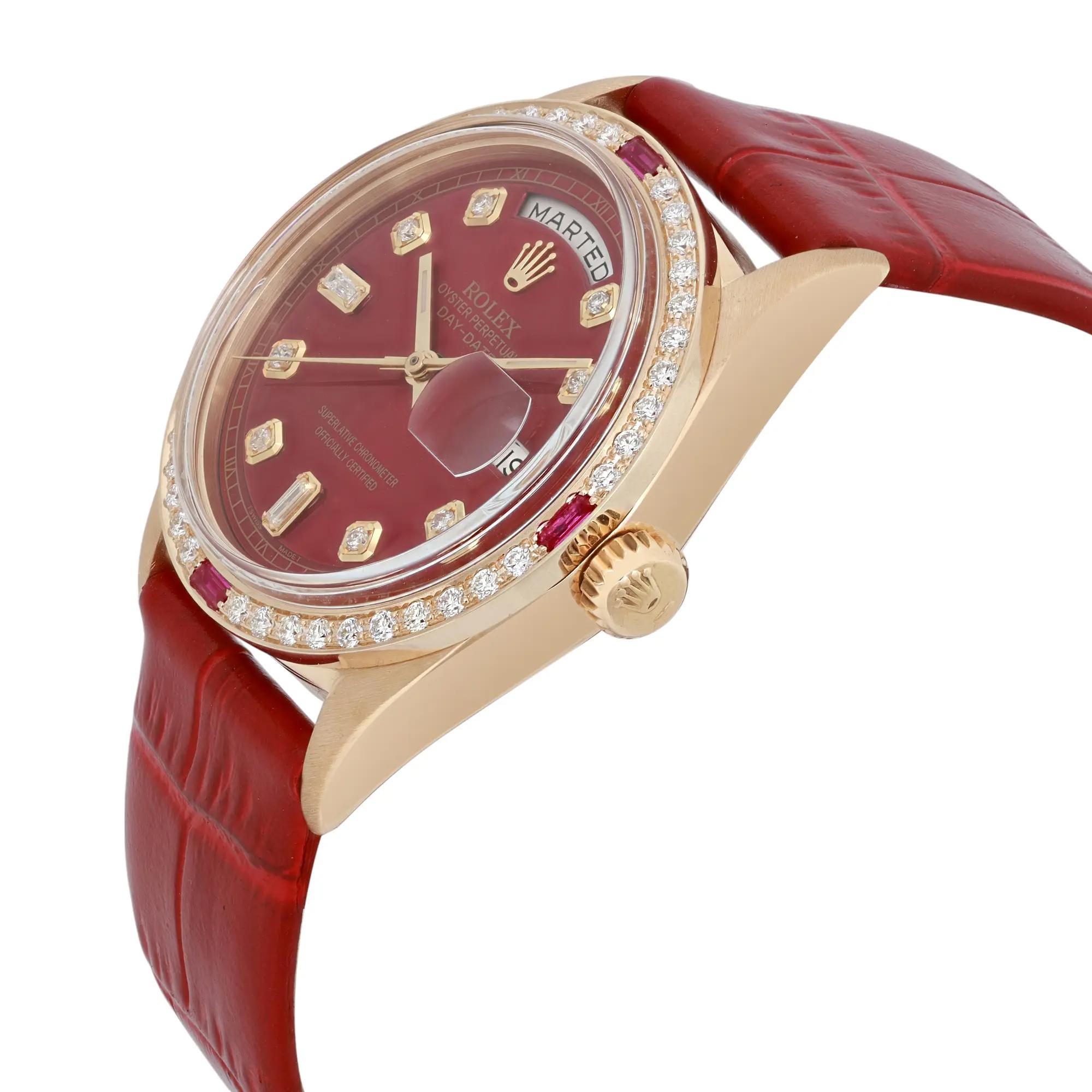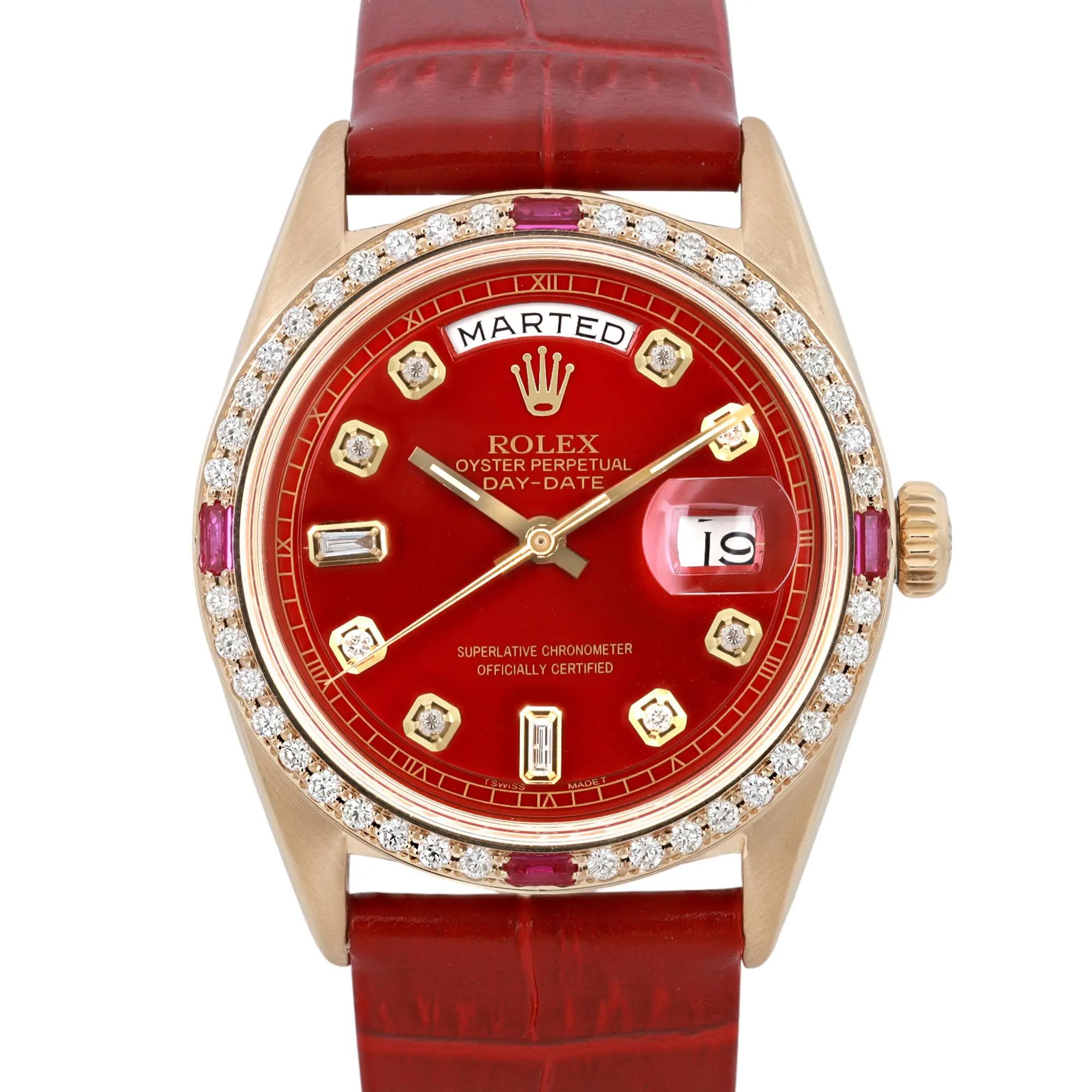 Rolex Day Date 18K Yellow Gold Red Custom Dial Diamond Watch 1803