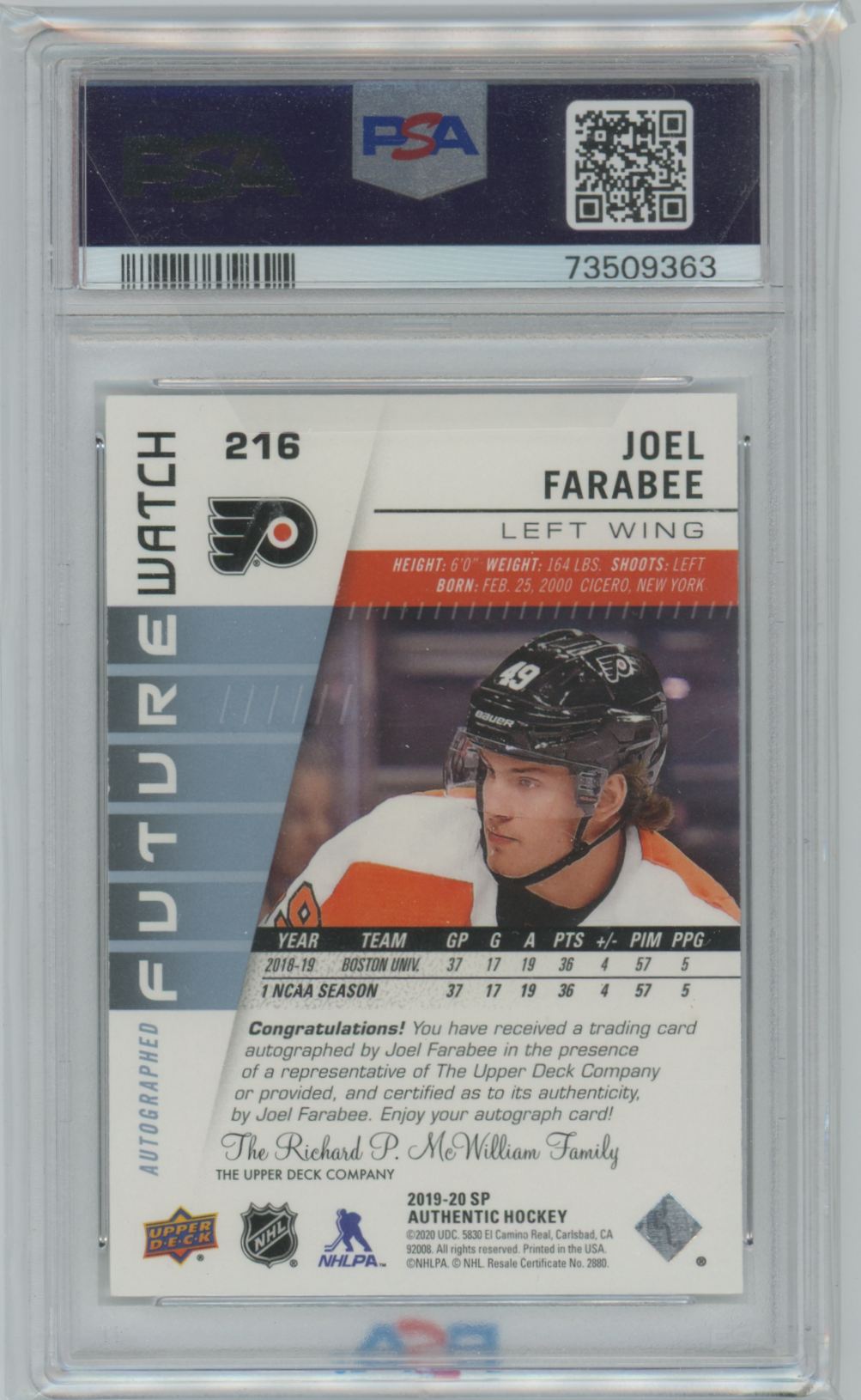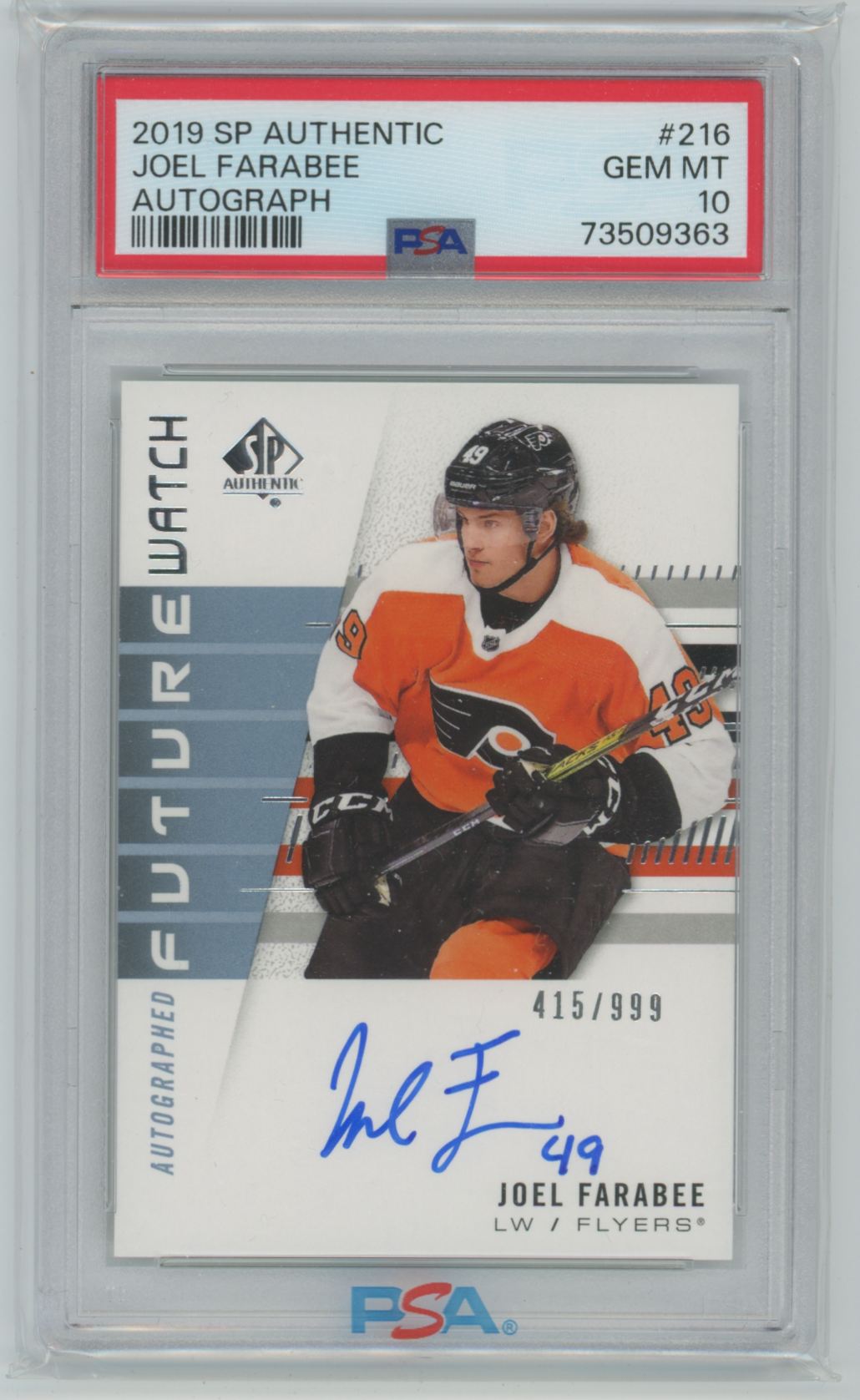 | 2019-20 UD SP Authentic Future Watch Auto Joel Farabee 415/999 PSA 10 |
