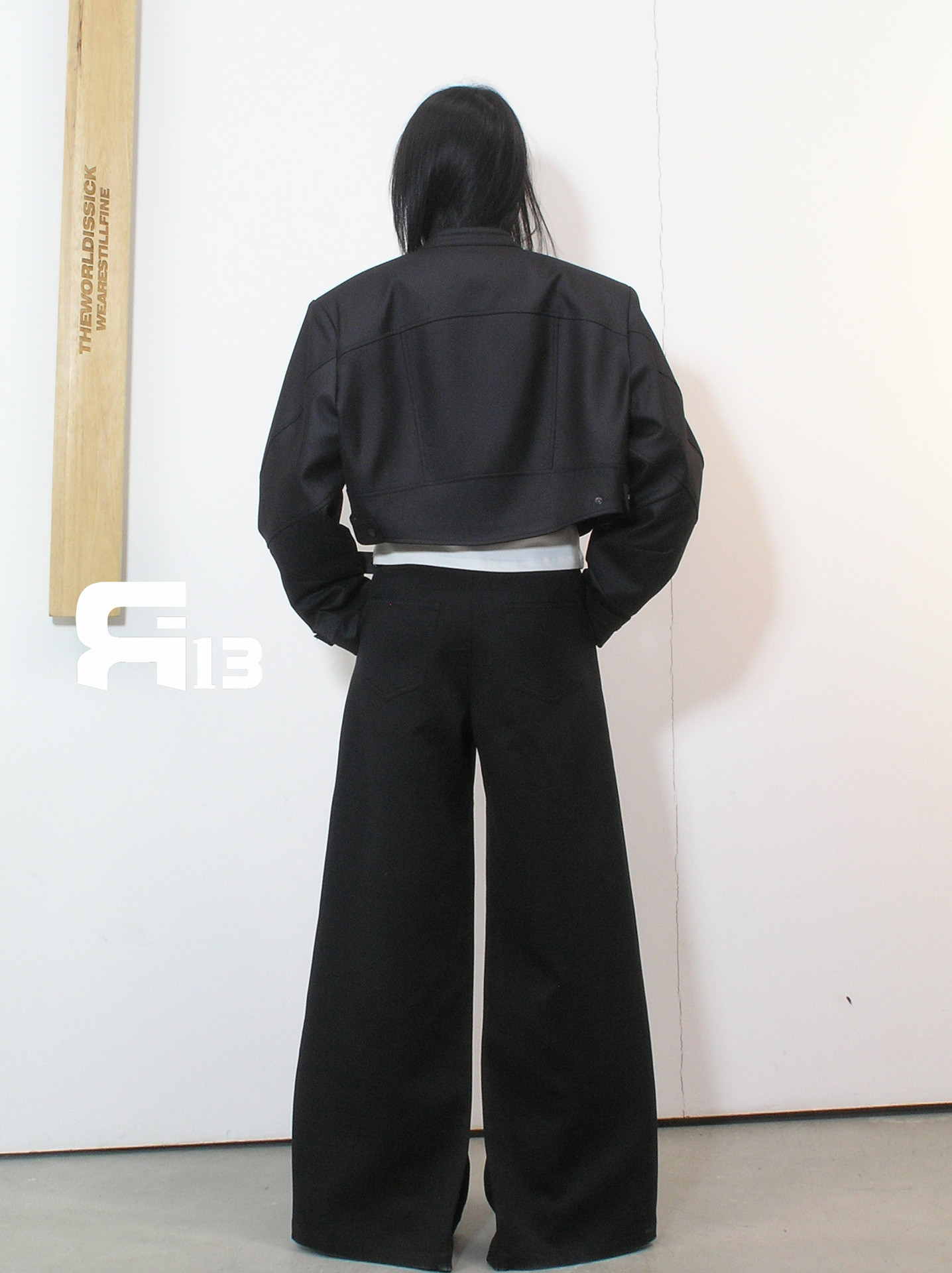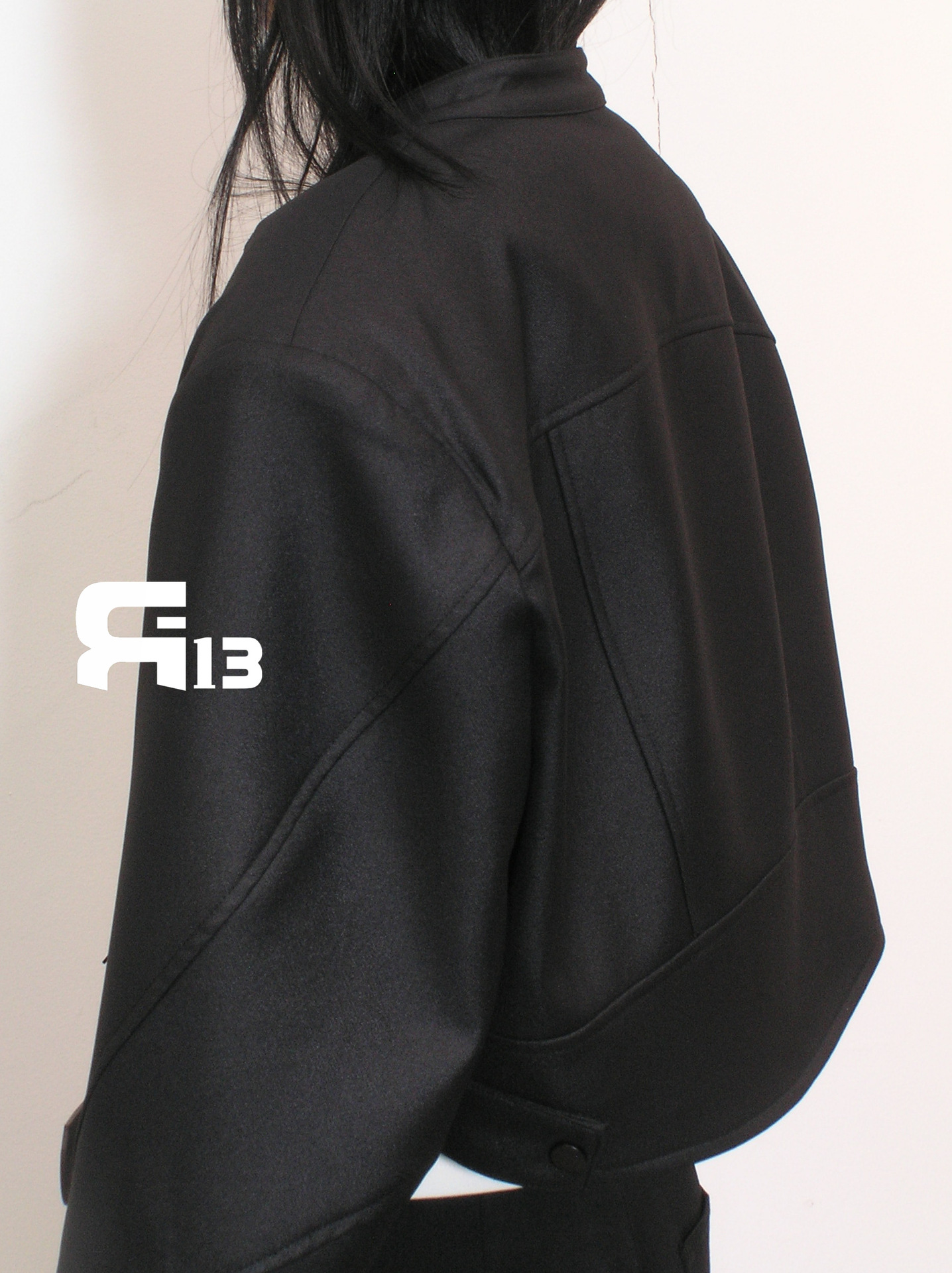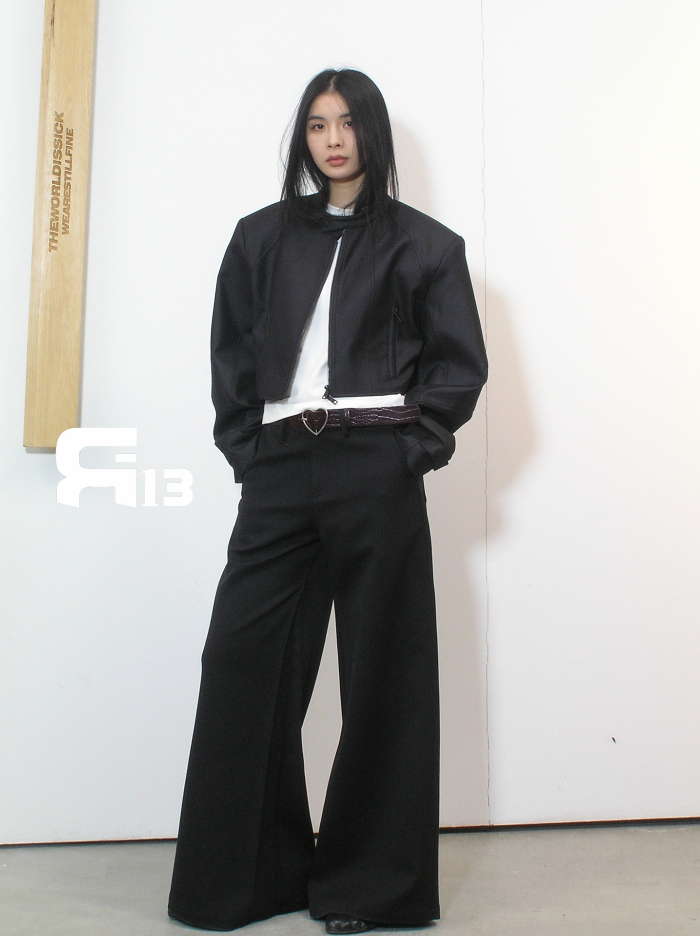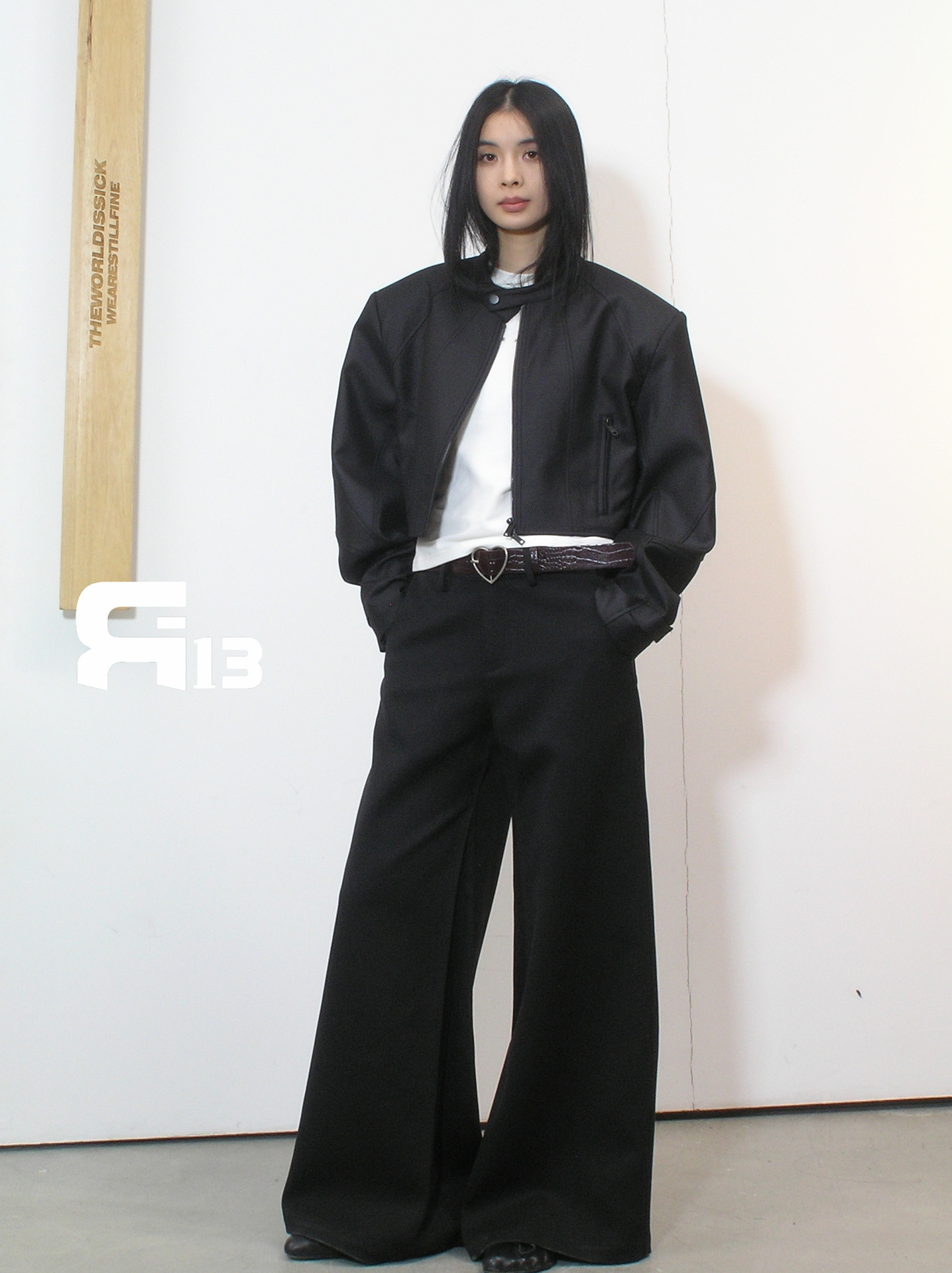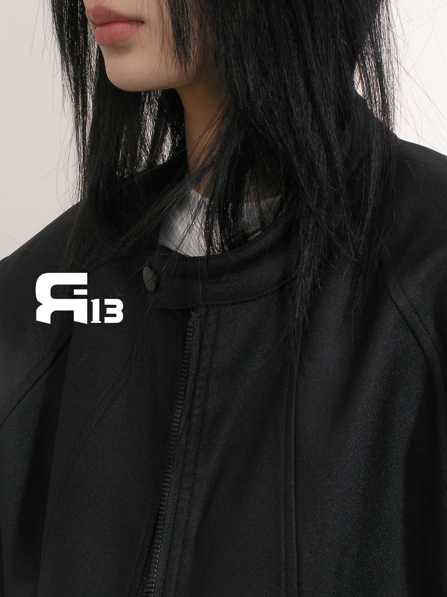 R13 Faux Leather Short Zipper Jacket Jacket Long Sleeve Cardigan Black / White