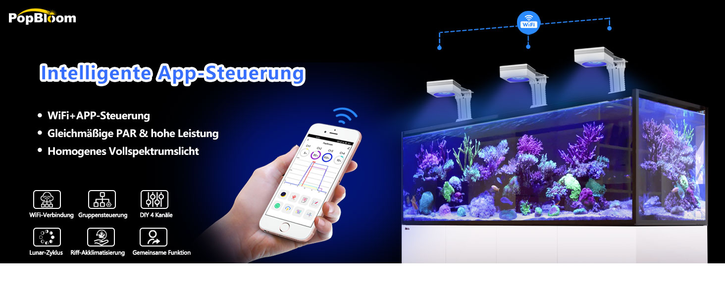 Effizienzverbesserungen reduzieren die Anforderungen an die aktive Kühlung für eine längere Lebensdauer der Komponenten. Verbesserungen, um die Armaturen winzig zu gestalten und ihr Profil und ihre Präsenz über Ihrem Aquarium zu reduzieren.