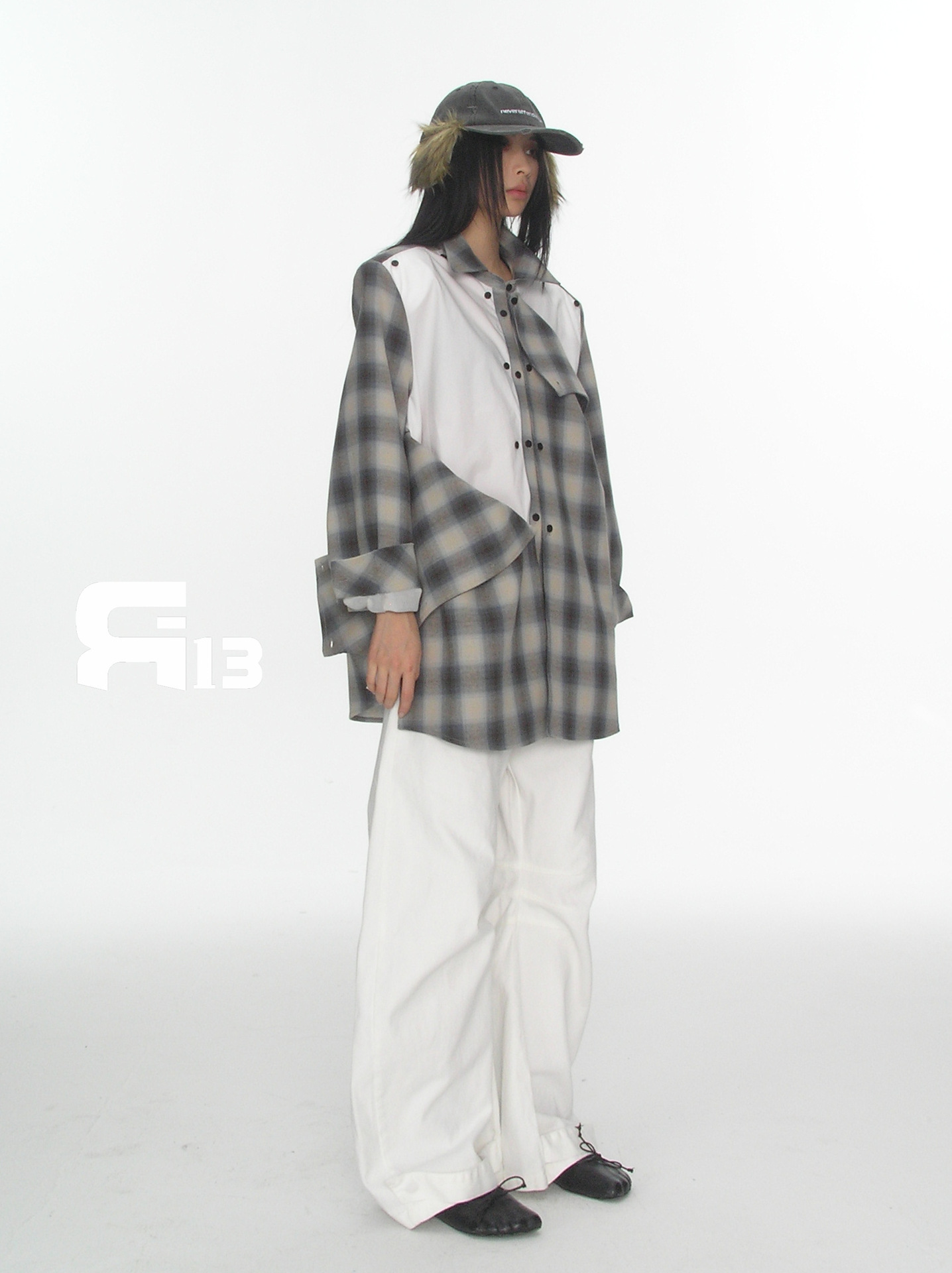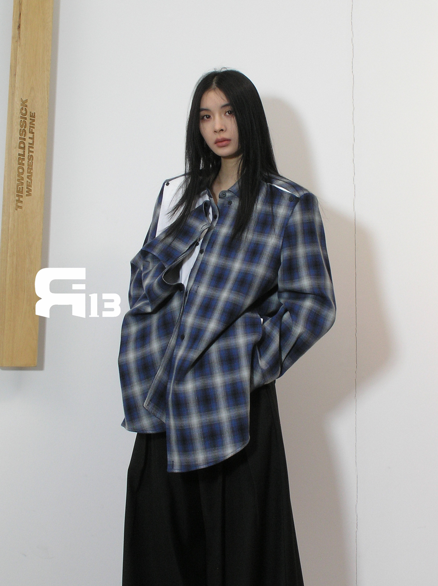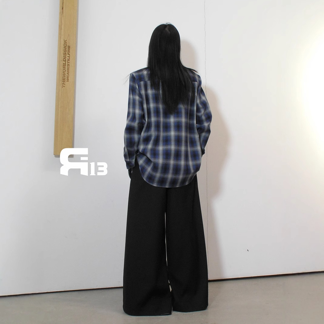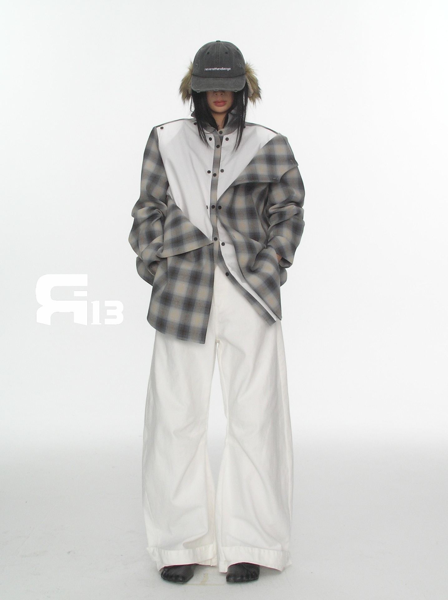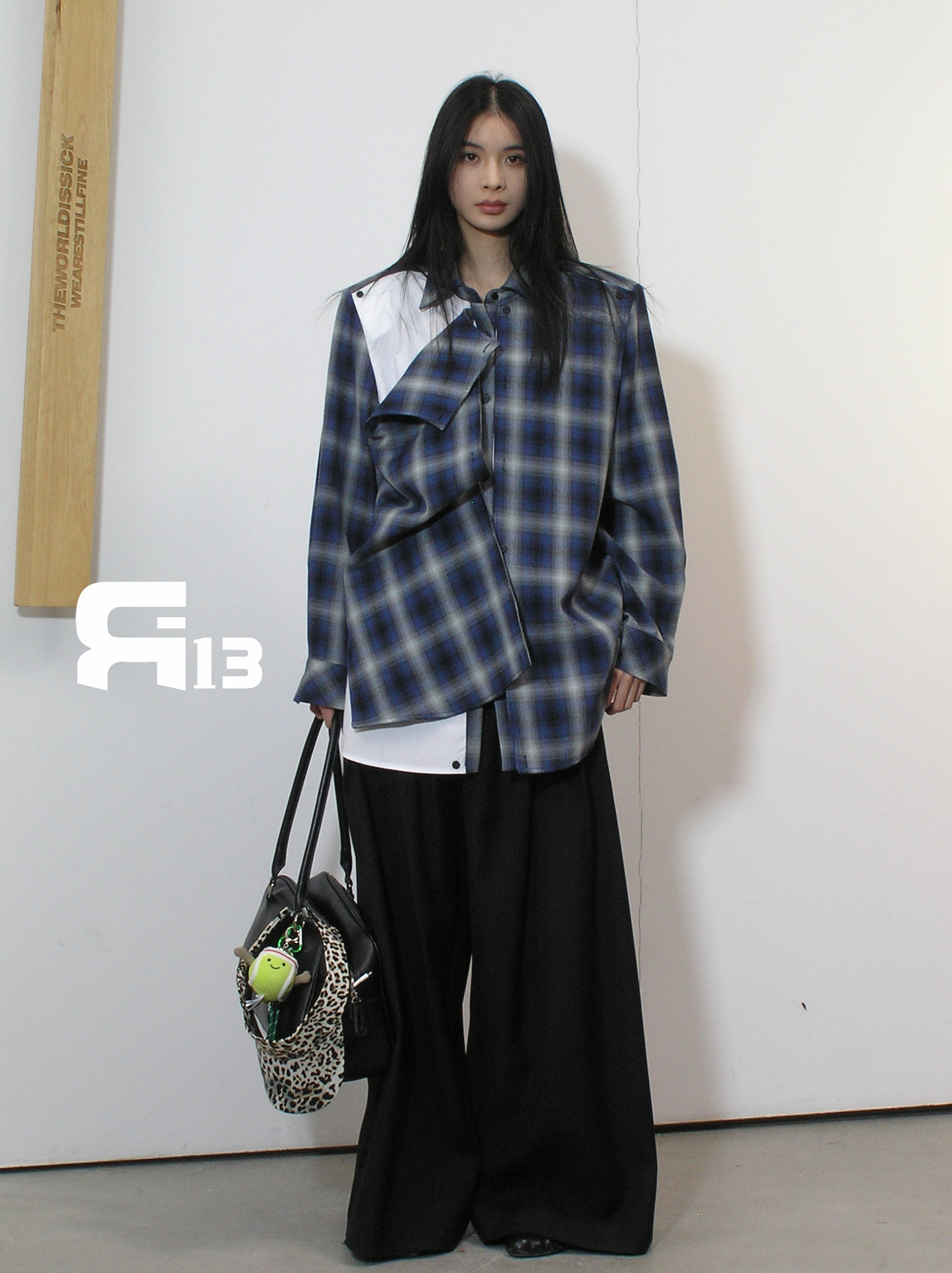 R13 Spliced Plaid Shirt, Coat Women's Button-up Top Irregular Button S Loose