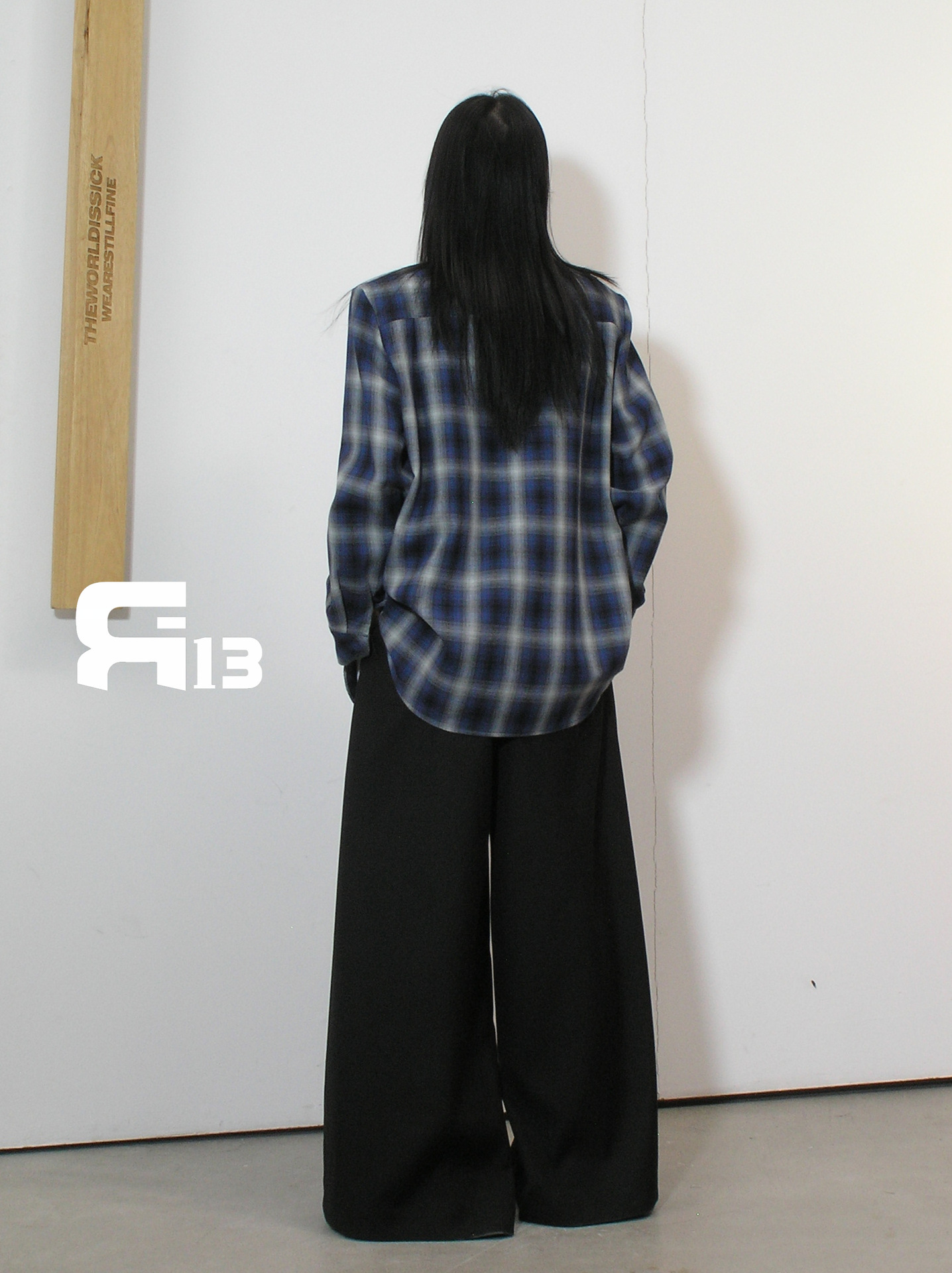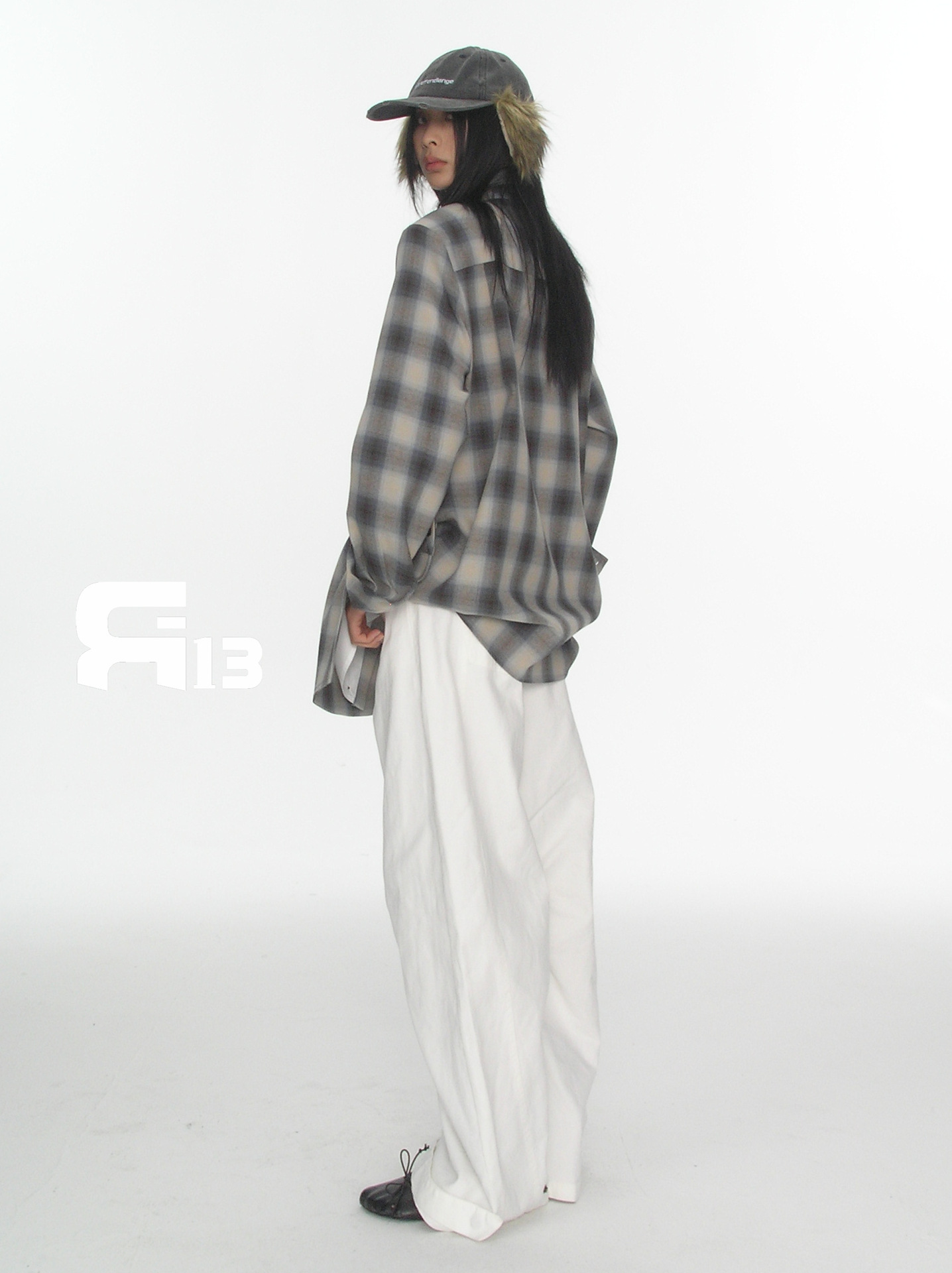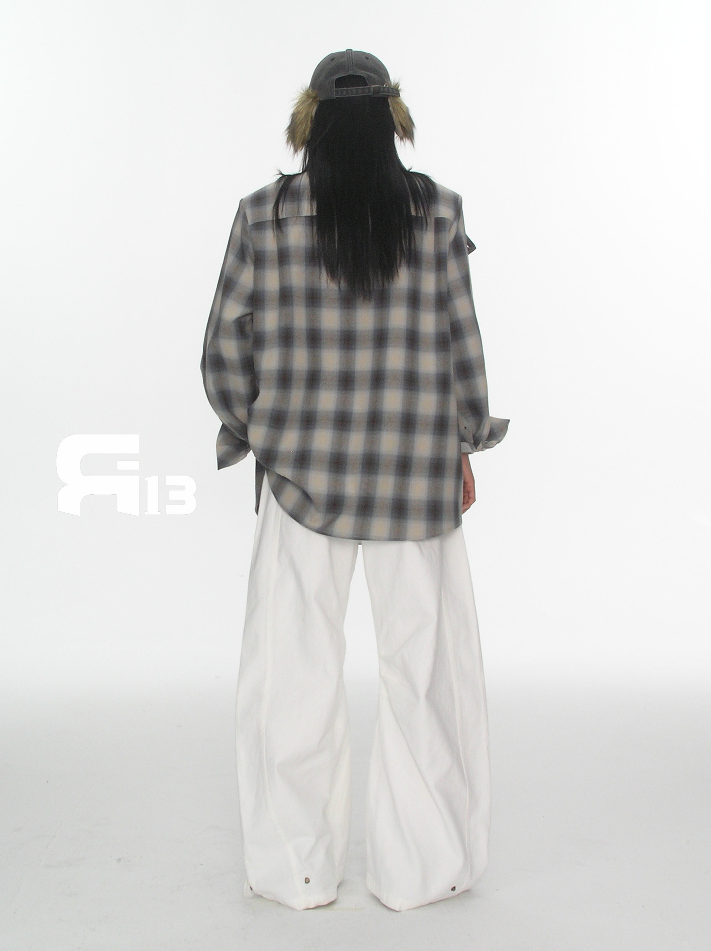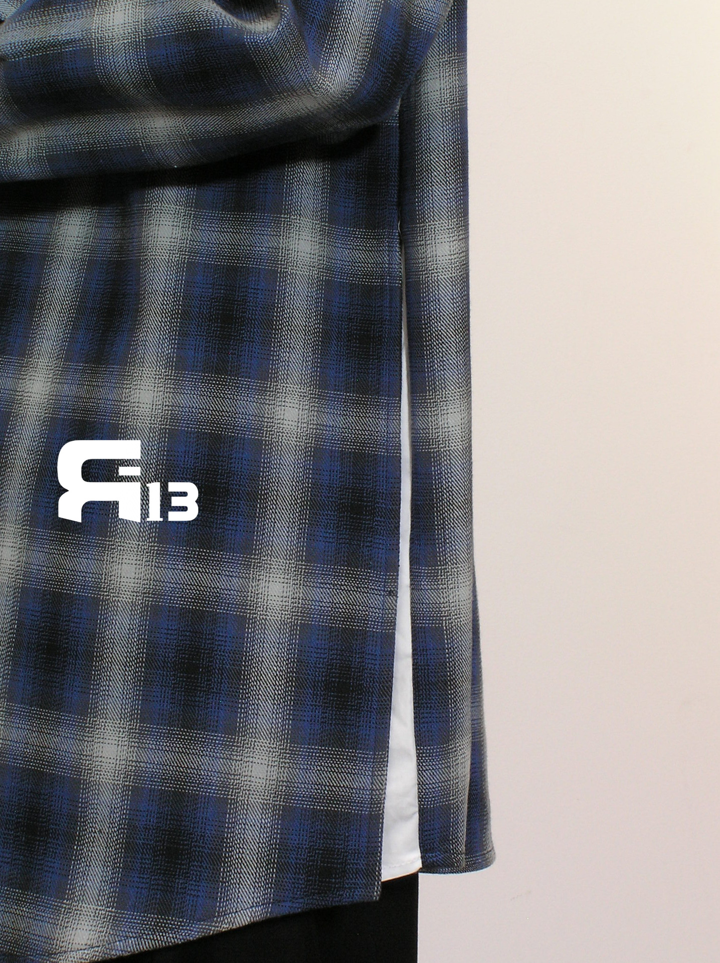 R13 Spliced Plaid Shirt, Coat Women's Button-up Top Irregular Button S Loose