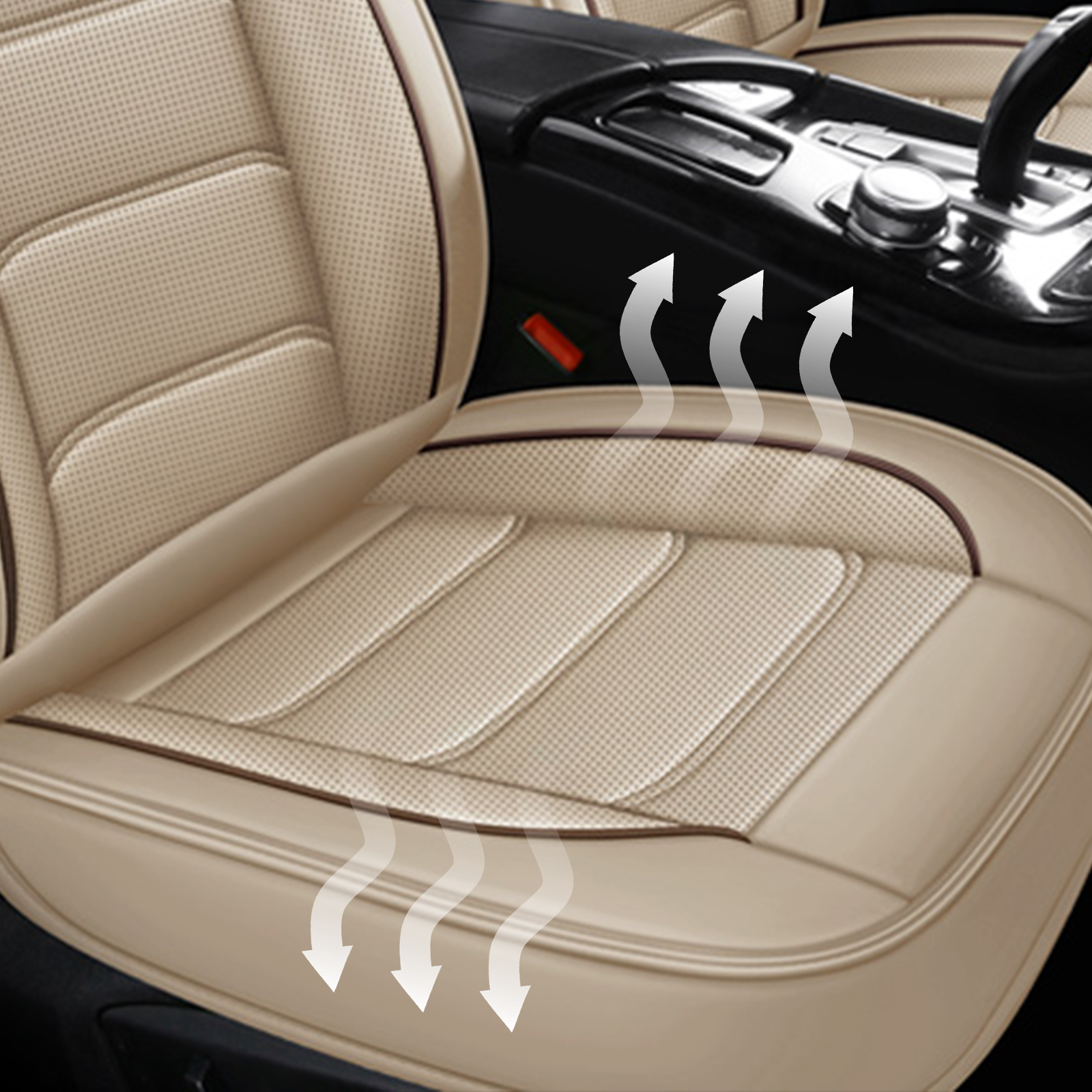 Premium faux leather is breathable, comfortable. The interior of the seat cover is filled with sponge, the appropriate thickness allows you to sit for a long time without getting tired.