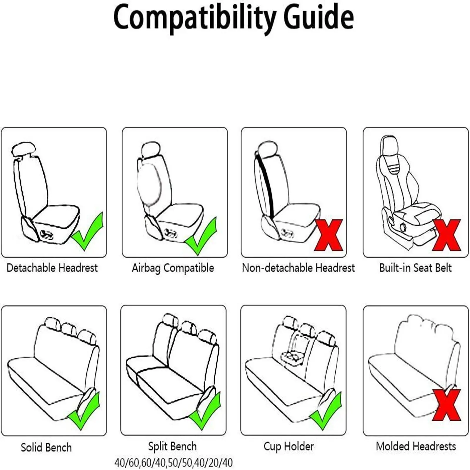 The single-needle stitching on the sides of the fully-wrapped seat won't get in the way of seat belt locks and airbags. Will not affect the heating function of the seats. (Tip):doesn't fit cars with front armrests and sports seats.