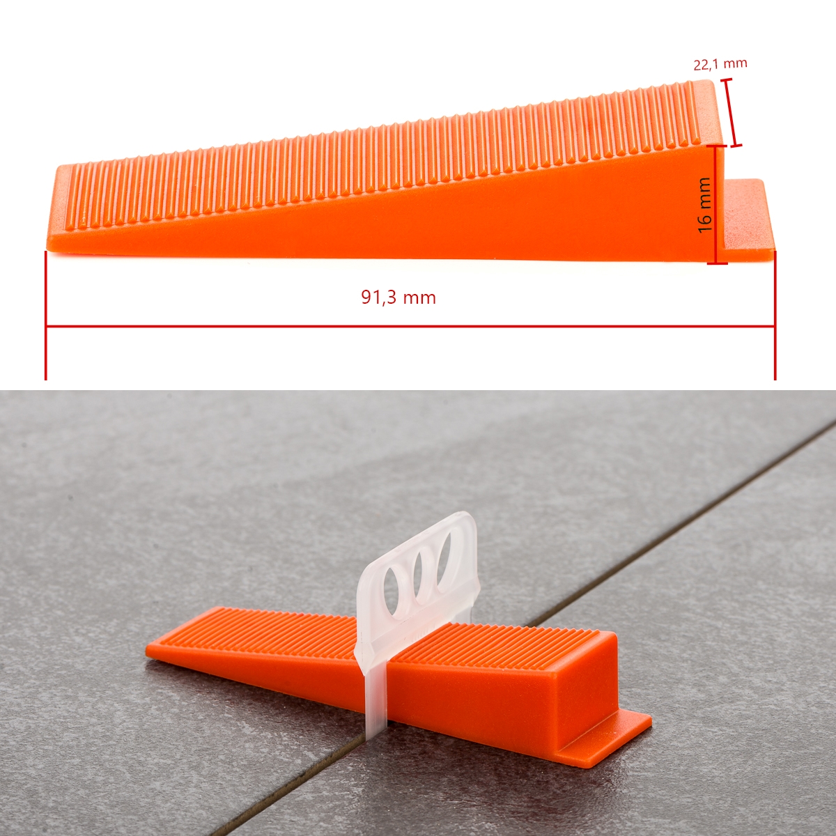 • 1x jeu (3000x tirette 1,5mm + 600x cales + pince de nivellement)