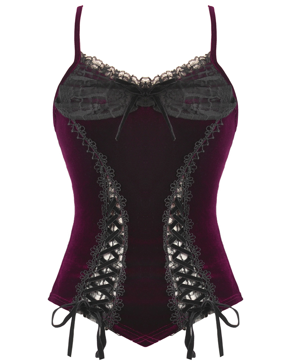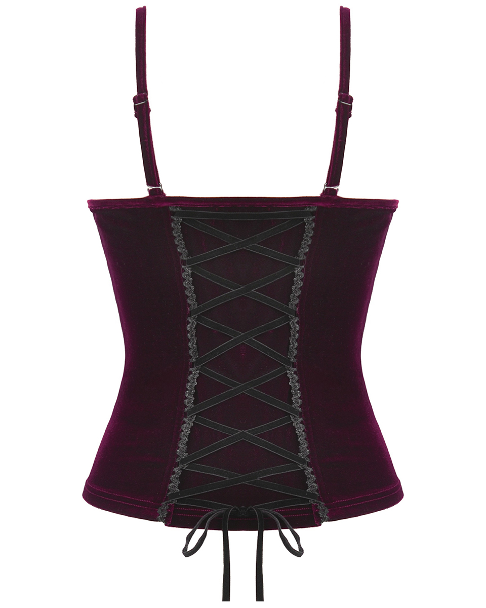 Dark In Love Womens Dark Gothic Vampire Velvet Cami Corset Top - Red & Black