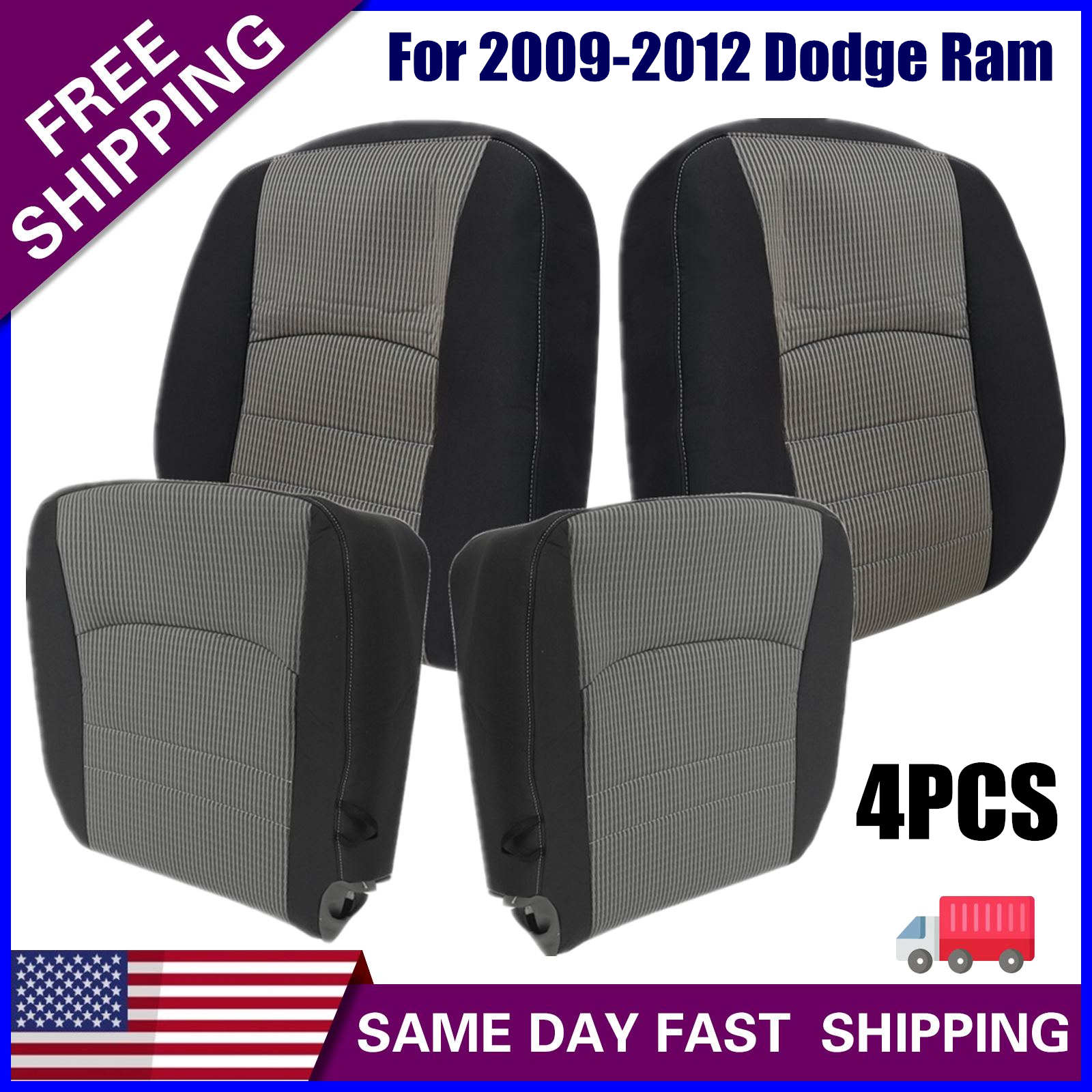 For 2009 2010 2011 2012 Dodge Ram 1500 2500 3500 Replacement Front Driver & Passenger Bottom & Lean Back Cloth Seat Cover Gray