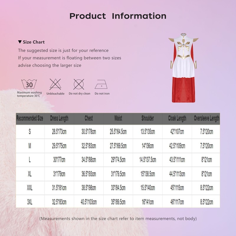 | Tag No. | Recommended Size | Dress Length | Chest | Waist | Shoulder | Cloak Length | Oversleeve Length |