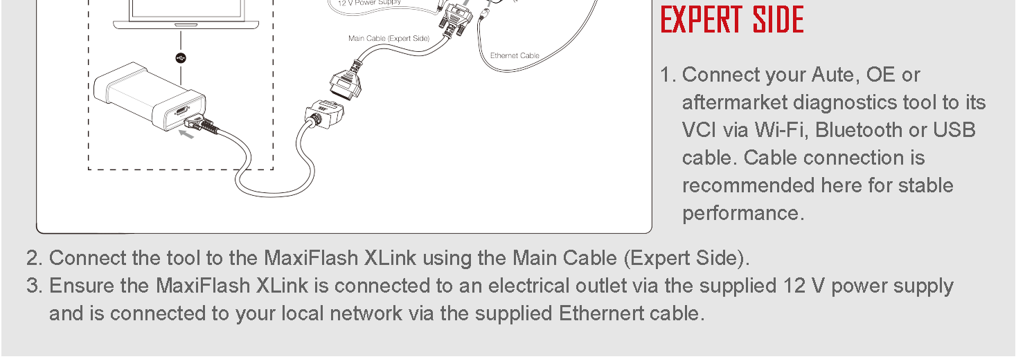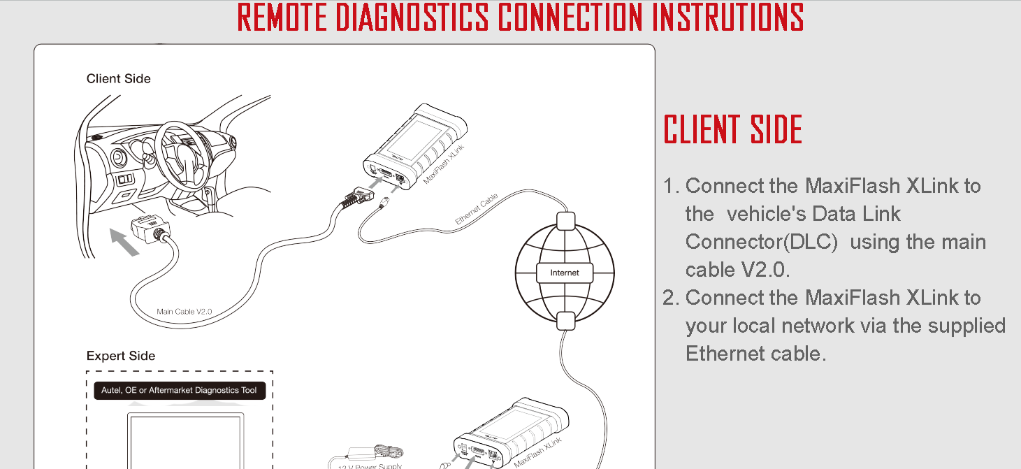 ● Can be used for both client-side (technician or vehicle) and expert-side (programmer with OE software or diagnostician) to provide remote programming and diagnostics.