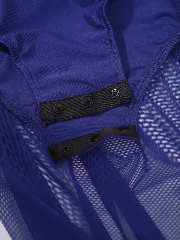 Built-in briefs with press buttons for ease of movement, a layer of flowy split mesh skirt to show the beauty of dance.