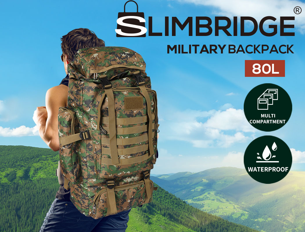Slimbridge 80L Military Tactical Backpack Hiking Camping Rucksack Outdoor Army