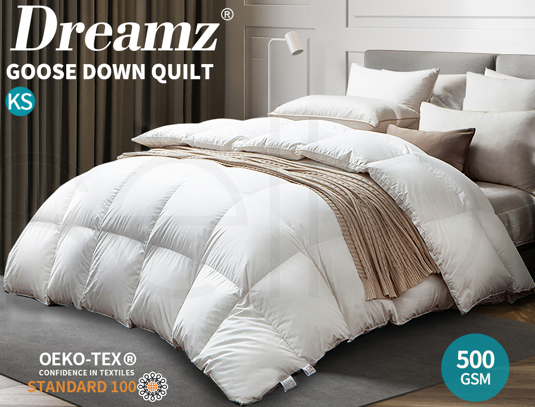 Dreamz 500GSM All Season Goose Down Feather Filling Duvet in King Single Size