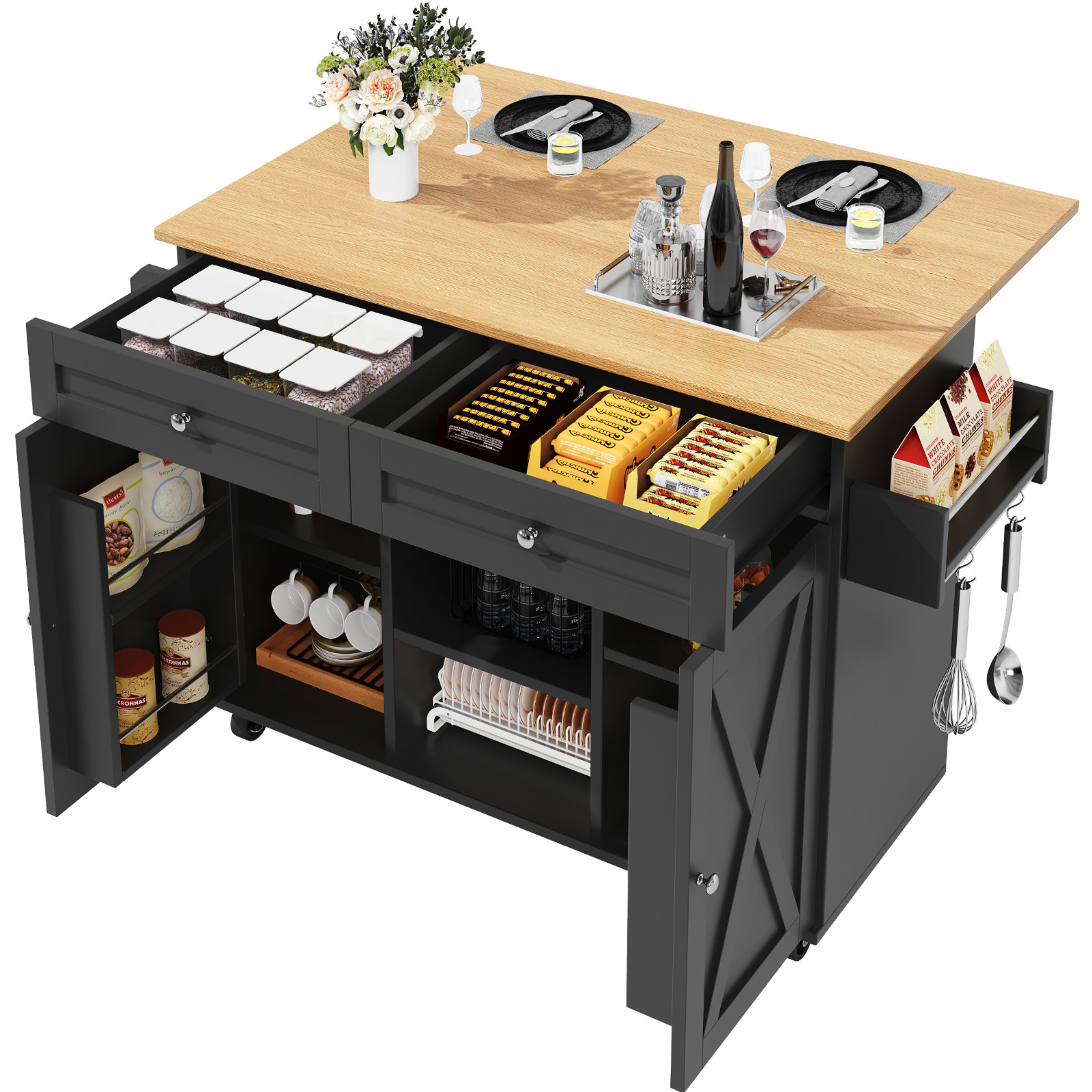 Klappbare Tischplatte in Holzoptik: Die großzügige Tischplatte dieser Kücheninsel lässt sich bequem ausklappen und bietet somit eine erweiterte Arbeitsfläche, ideal zum Kochen, Backen oder Servieren. In eingeklapptem Zustand spart sie Platz und bleibt dennoch funktional. Das Design in natürlicher Holzoptik fügt sich harmonisch in verschiedene Küchenstile ein – von modern bis rustikal.